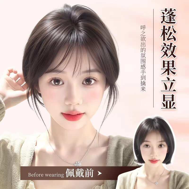 假发女片头顶补发片真发混丝自然增发量遮白发假刘海假发片斜刘海