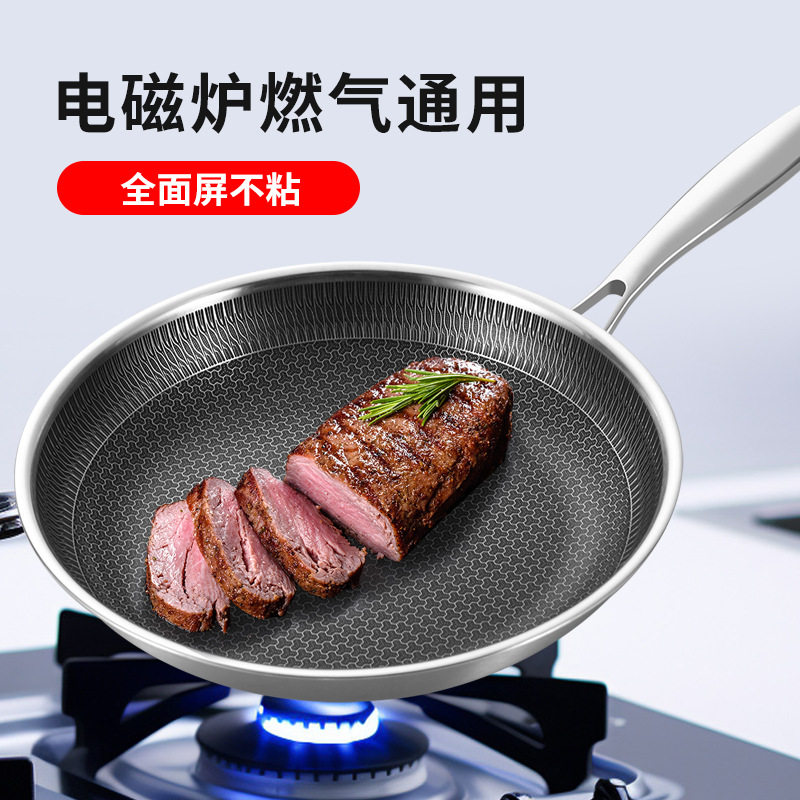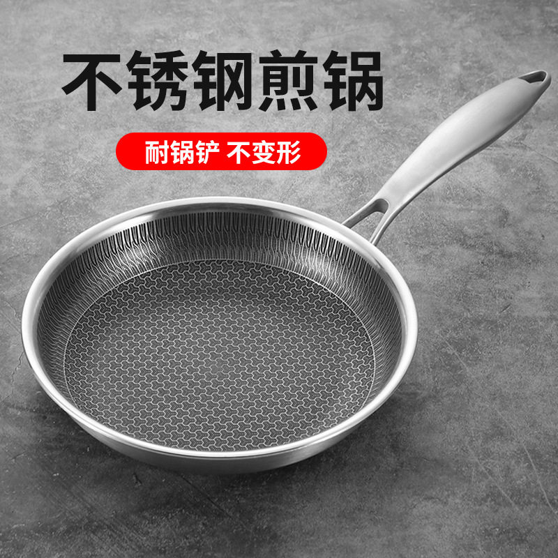跨境304三层钢不锈钢煎锅加厚平底锅无涂层蜂窝不沾锅煎鸡蛋牛排