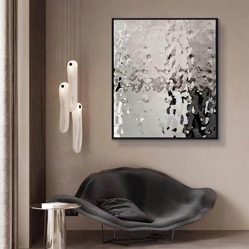 酒店别墅墙面装饰画现代简约客厅壁画装置画不锈钢水波纹实物画