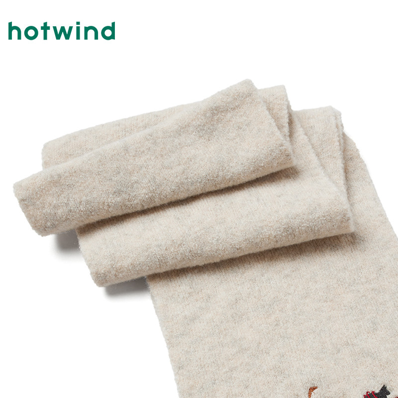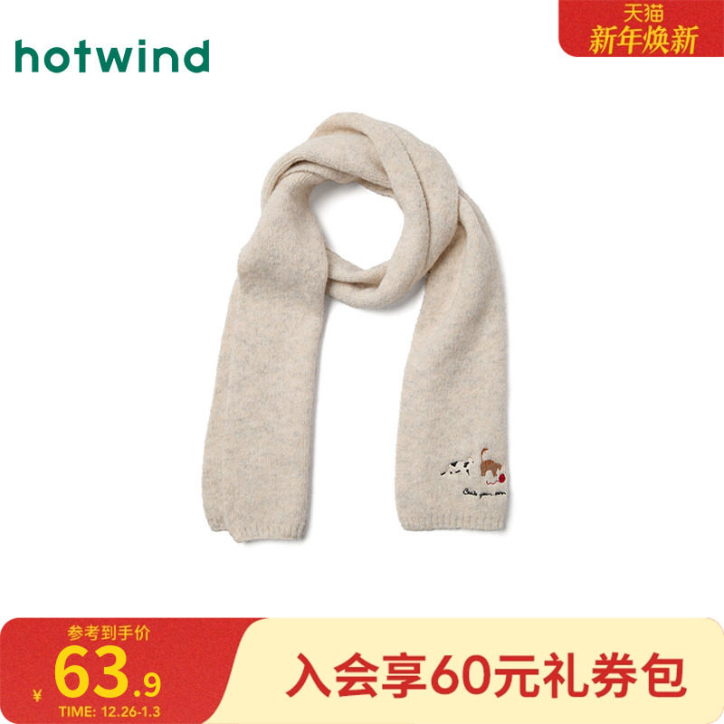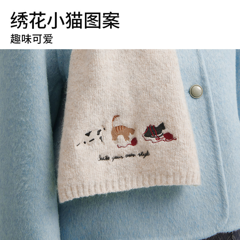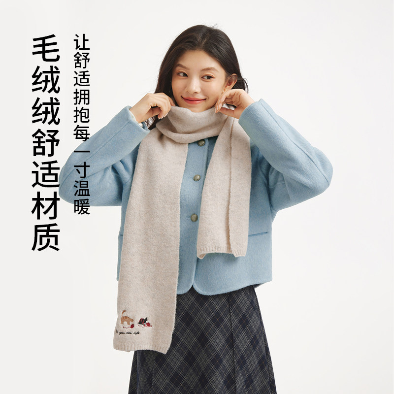 热风2025年冬季新款女士韩系绣花小猫针织围巾温暖舒适