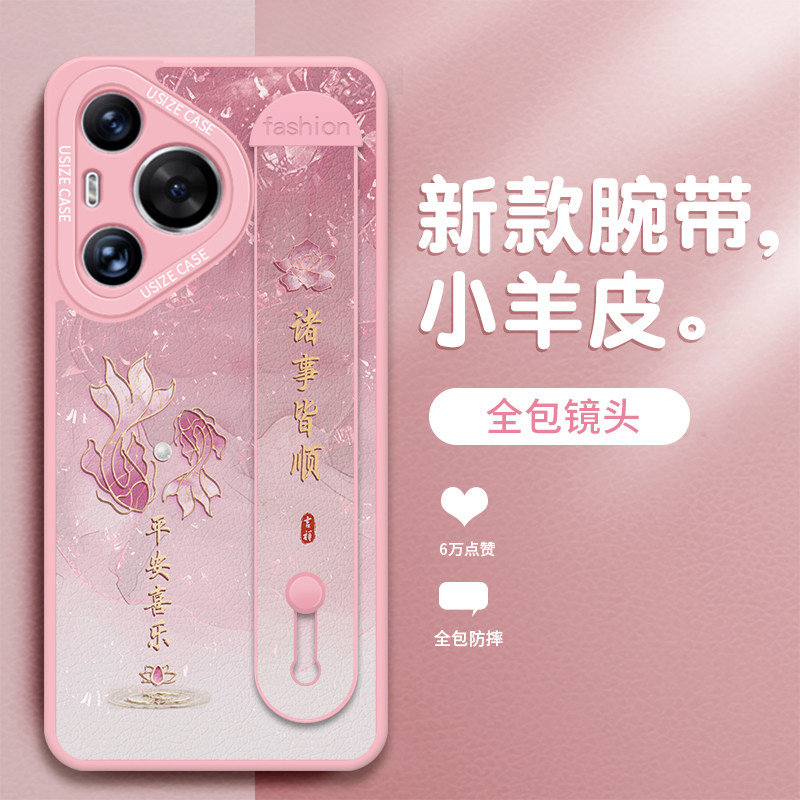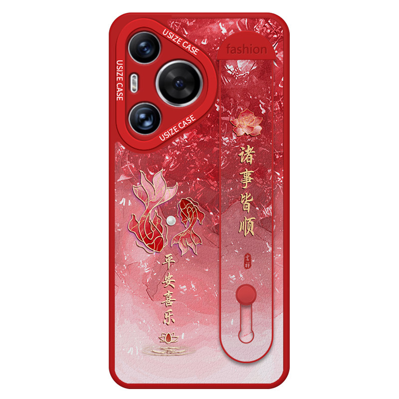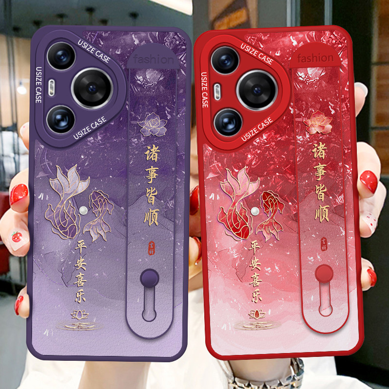 腕带锦鲤适用华为pura70手机壳女款p80pro小羊皮p60支架p50pro防摔p40硅胶30好运70ultra高档50e时尚国风红色