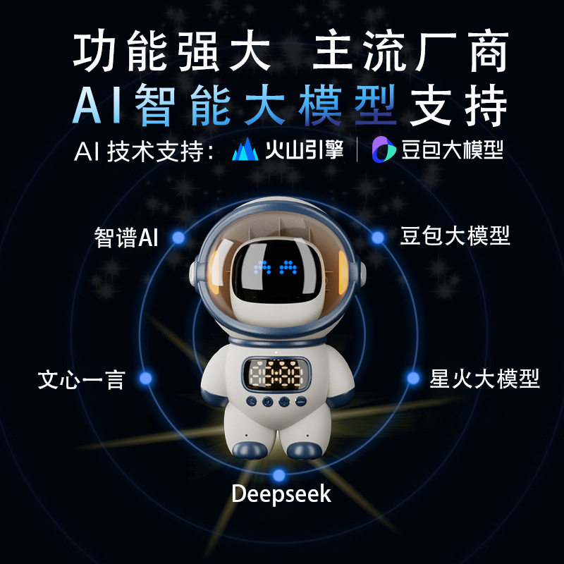智能AI大模型豆包DeepSeek宇航员音响蓝牙TF卡时钟闹钟多功能音箱