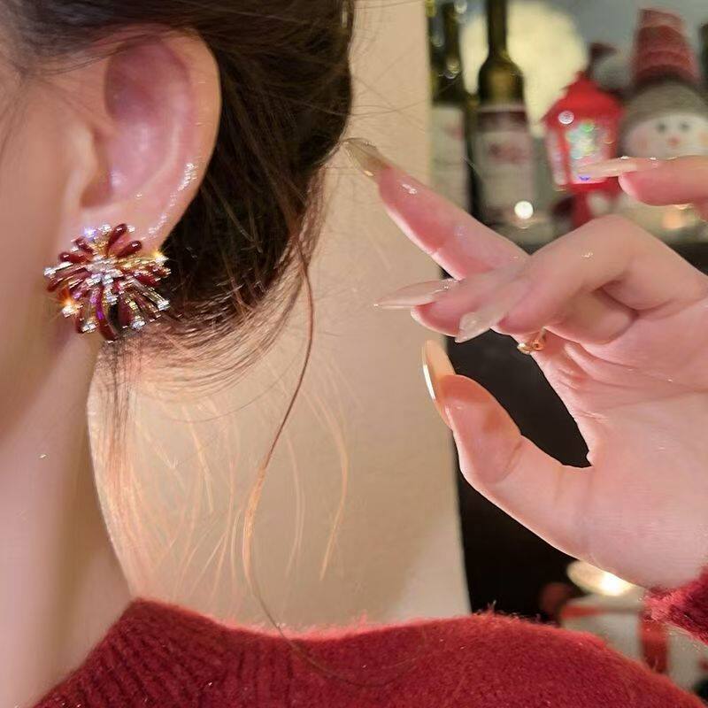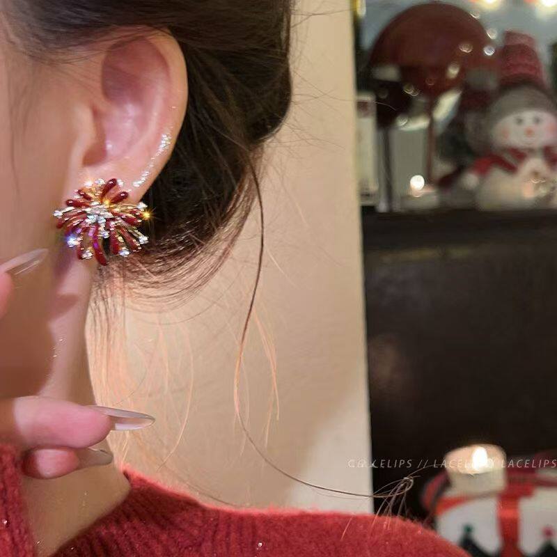 过年红色烟花耳钉轻奢设计耳环2026新爆款高级感精致新年氛围耳饰
