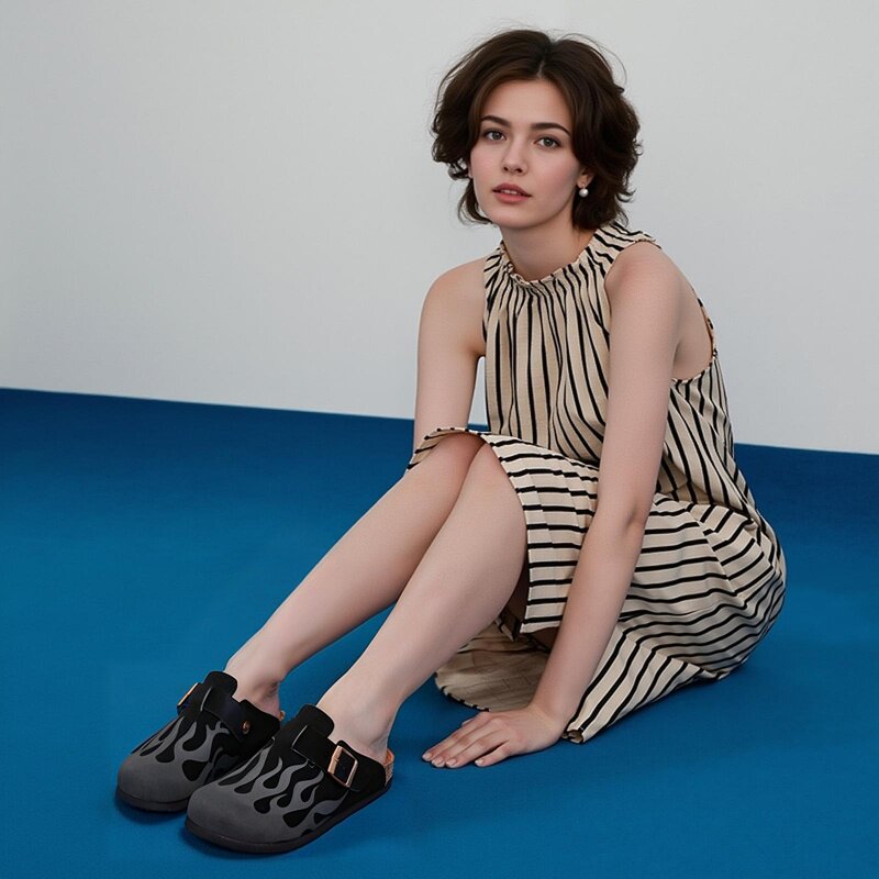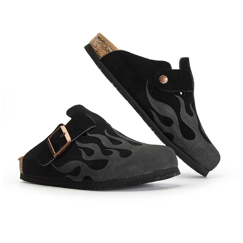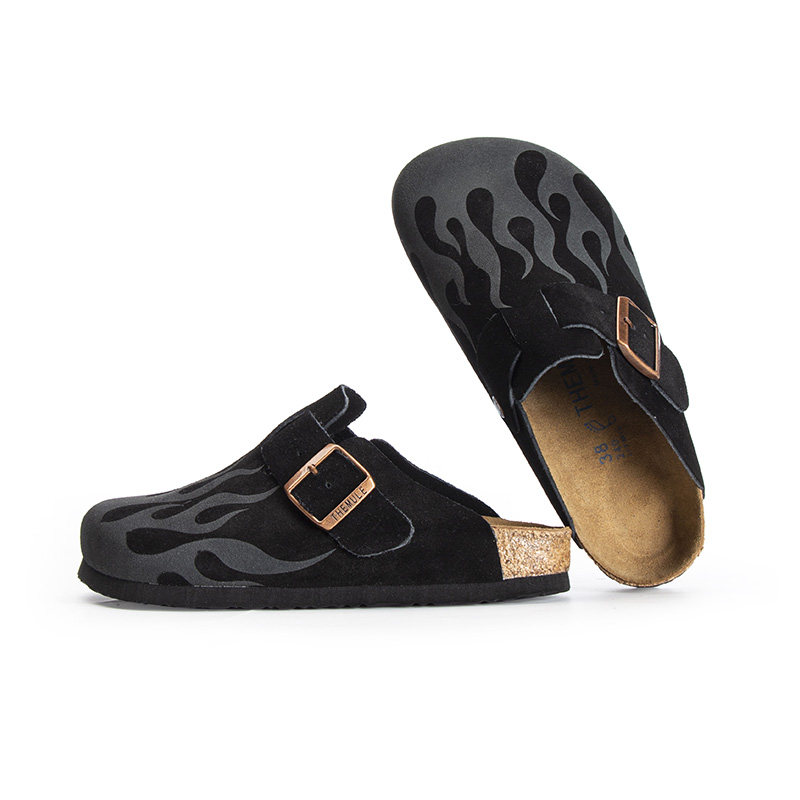 THEMULE勃肯鞋女2025年新款真皮包头半拖鞋外穿软木平底博肯足弓