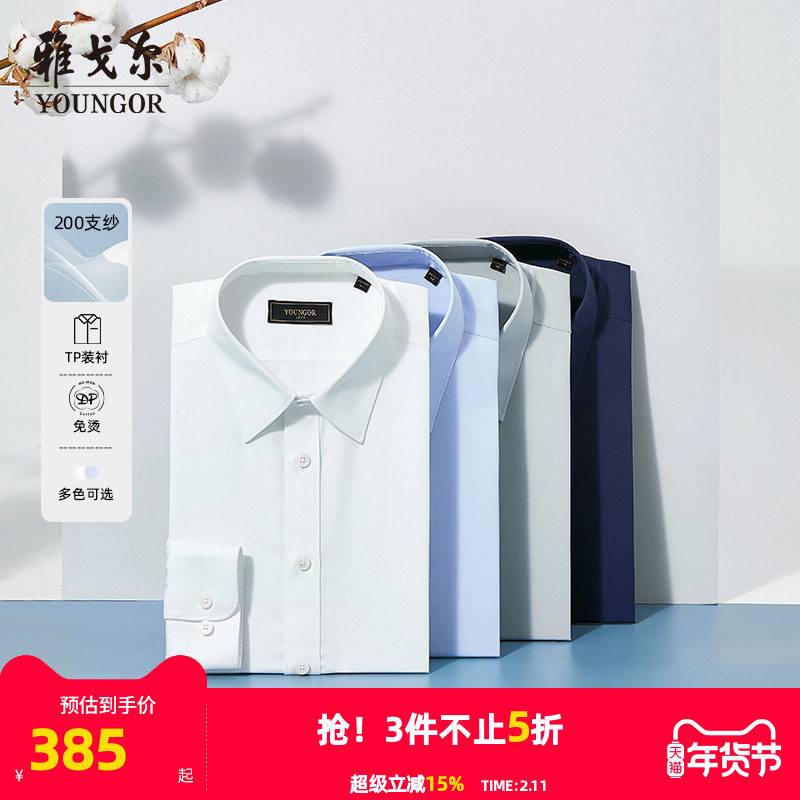 【清仓】杉杉品牌男士长袖衬衫纯色2025春季新款休闲免烫纯棉衬衣