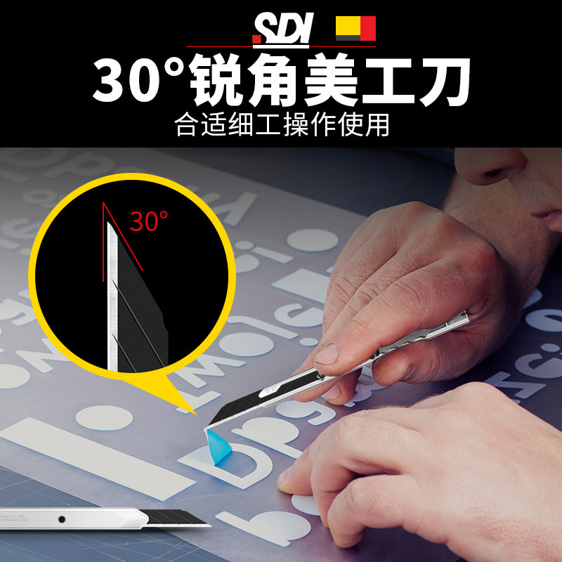 SDI手牌0439C小美工刀9mm不锈钢防滑自动锁30度尖角汽车贴膜墙纸裁纸刀拆快递切割刀办公工具学生手工刀贴膜