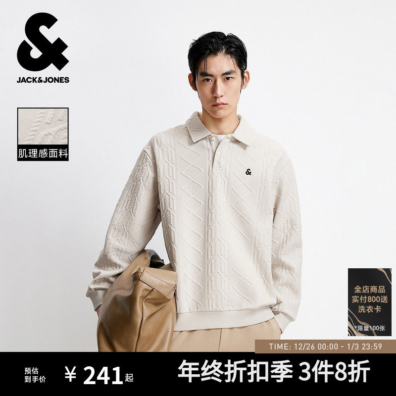 【POLO衬衫领卫衣】杰克琼斯男装秋季新款肌理面料外套情侣刺绣