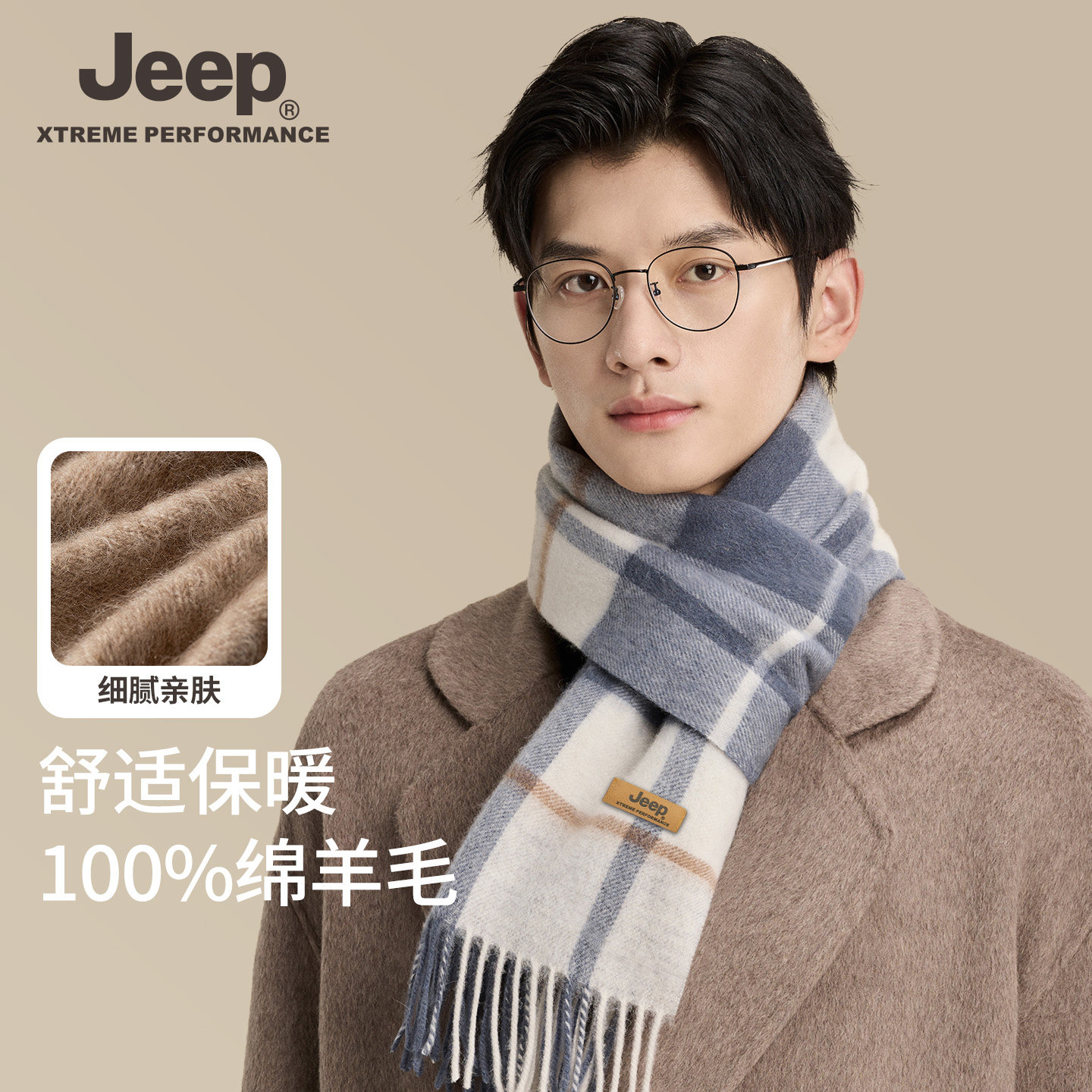 jeep吉普100%羊毛围巾2025新款男士冬季加厚保暖防风送男朋友男冬