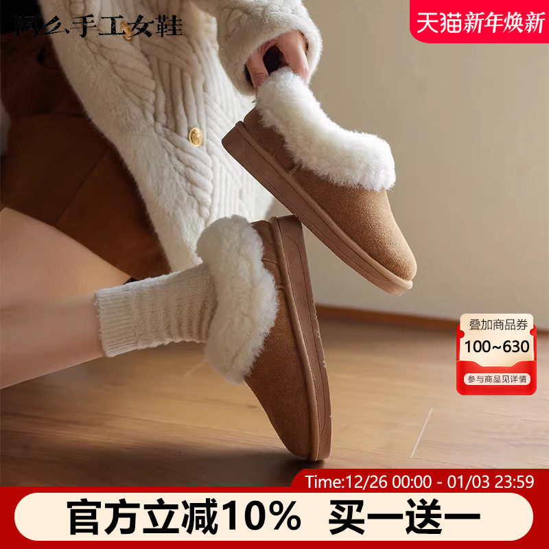阿么手工女鞋真皮雪地靴加厚2025冬季新款时尚百搭保暖平底短靴女