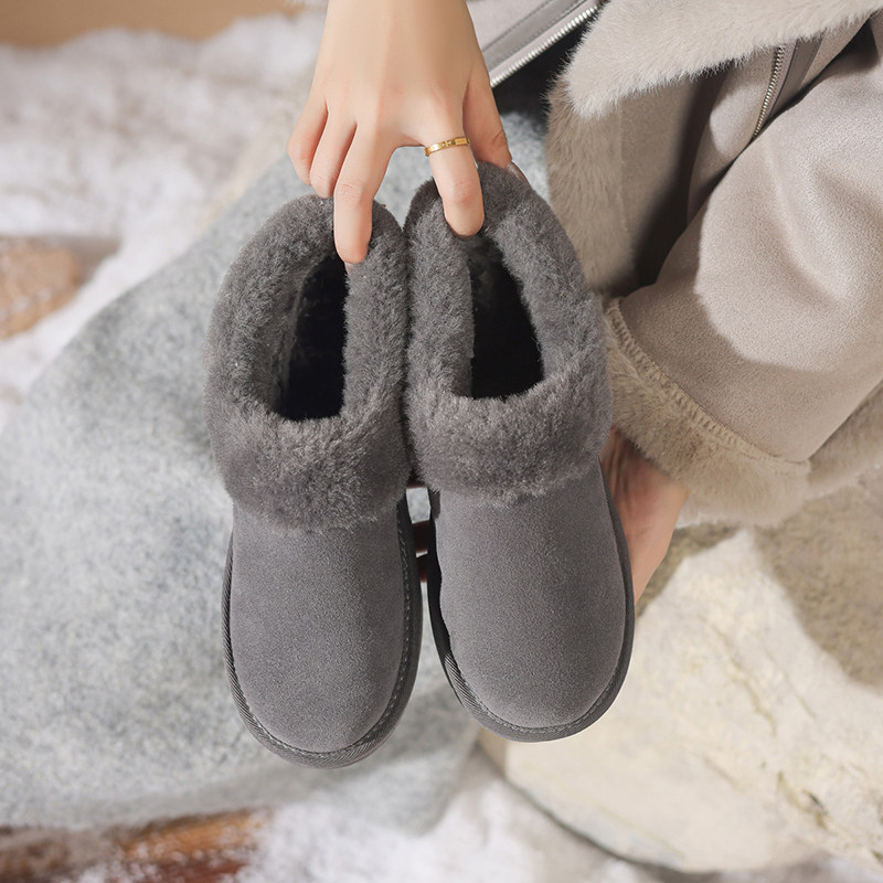 低帮厚底雪地靴女2025新款冬季懒人一脚蹬毛毛棉鞋加绒加厚女鞋子