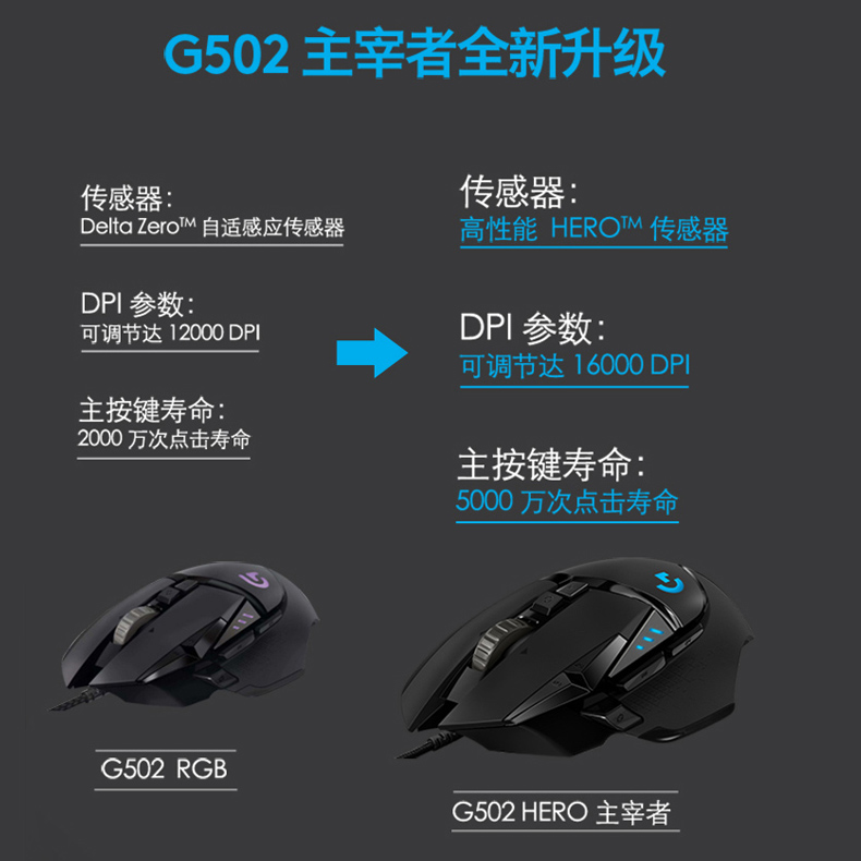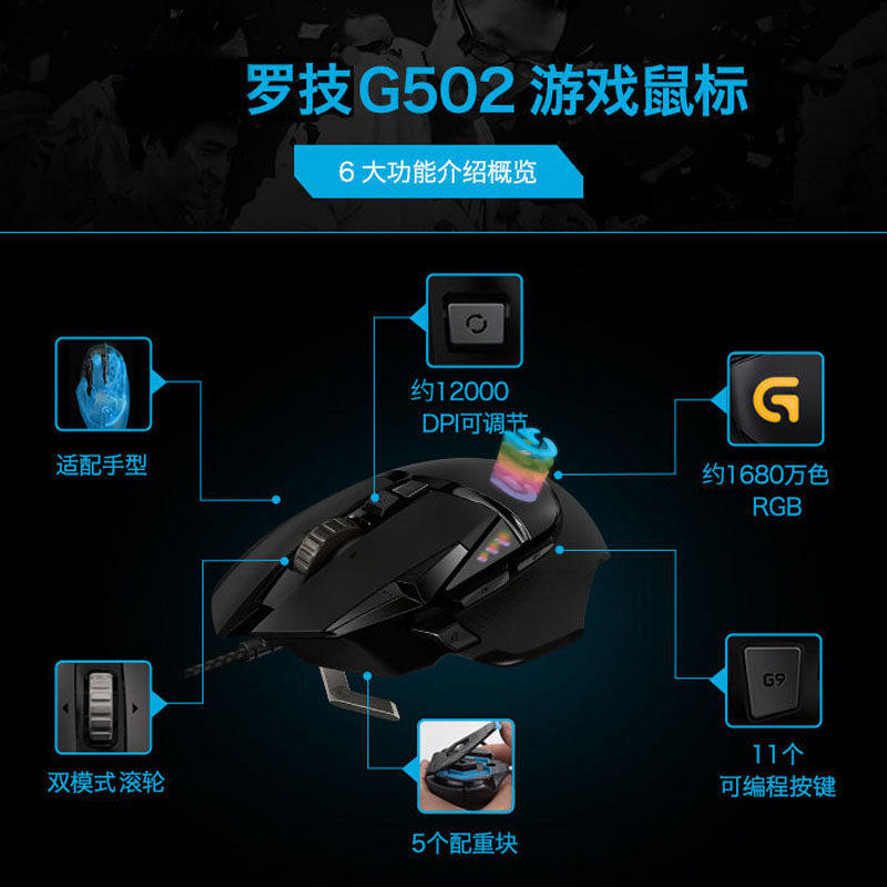 罗技G502HERO有线鼠标电竞机械游戏吃鸡cs打瓦专用笔记本电脑编程