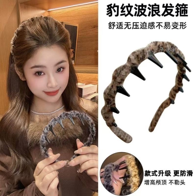 2024新款带齿波浪发箍女洗脸防滑豹纹发卡高颅顶头箍高级感头饰品