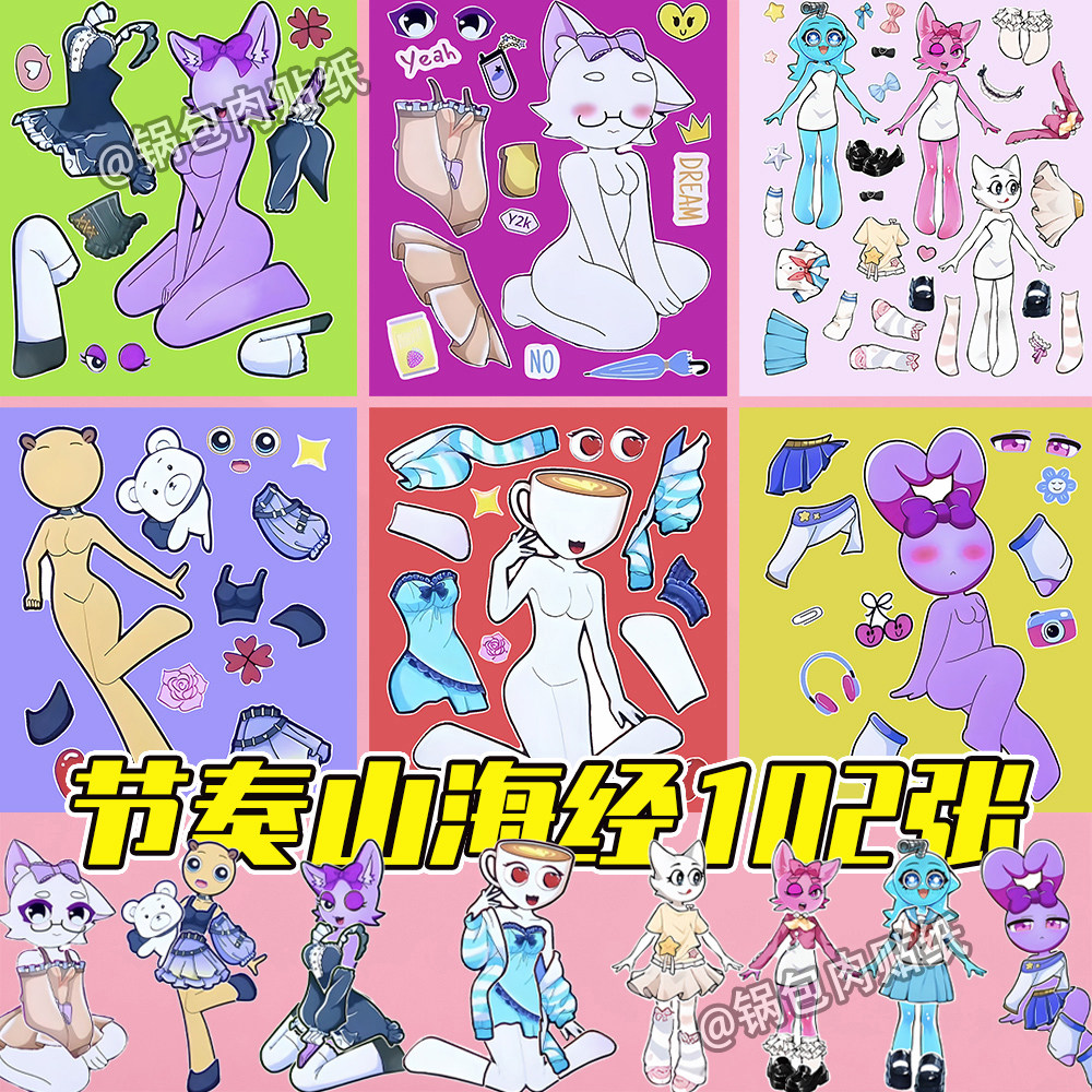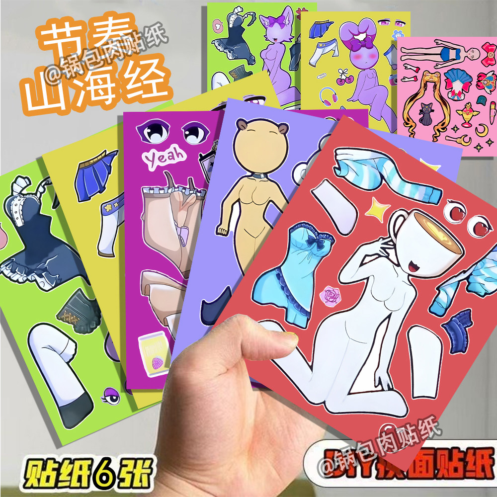 大张升级】节奏盒子山海经精美换装贴纸儿童益智diy手工创意贴画