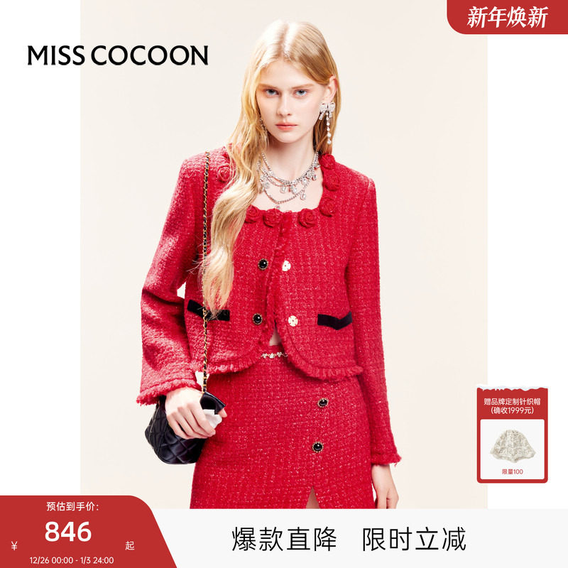 可可尼cocoon红色小香风套装2025秋季新款外套半身裙新年战袍穿搭