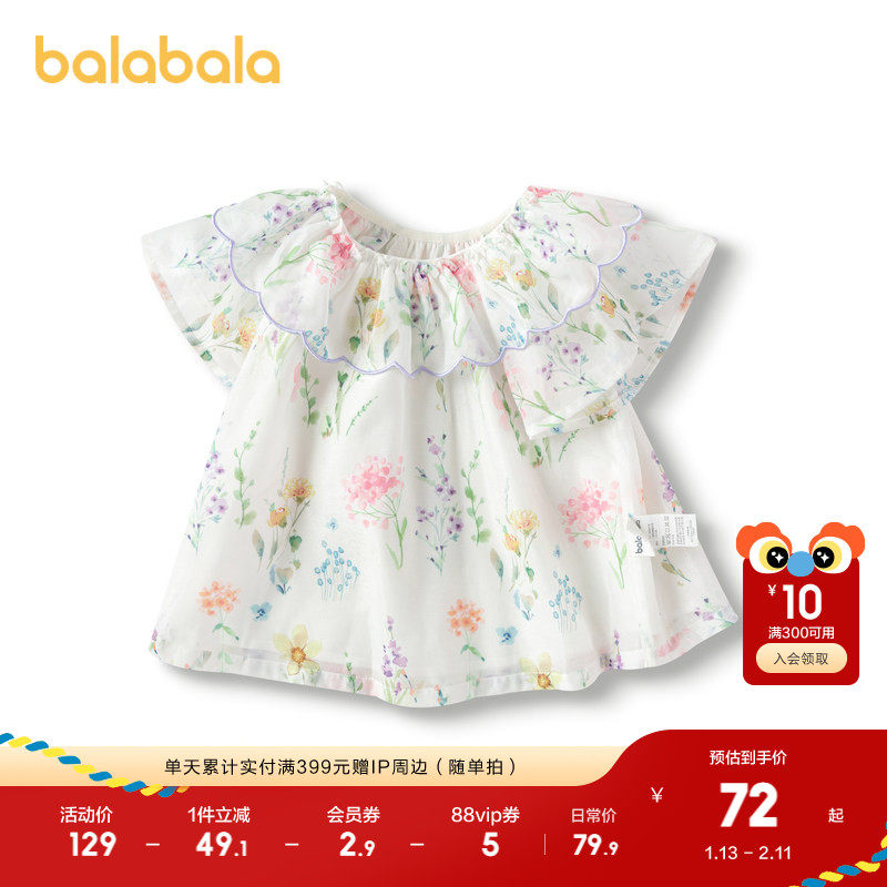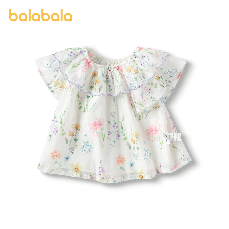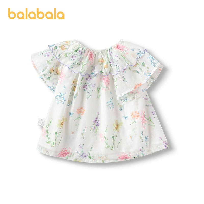 巴拉巴拉童装儿童短袖衬衫雪纺衣服A型印花法式上衣女童夏装甜美