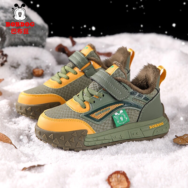 巴布豆男童鞋子2025秋冬季新款儿童运动鞋中大童加绒保暖二棉鞋