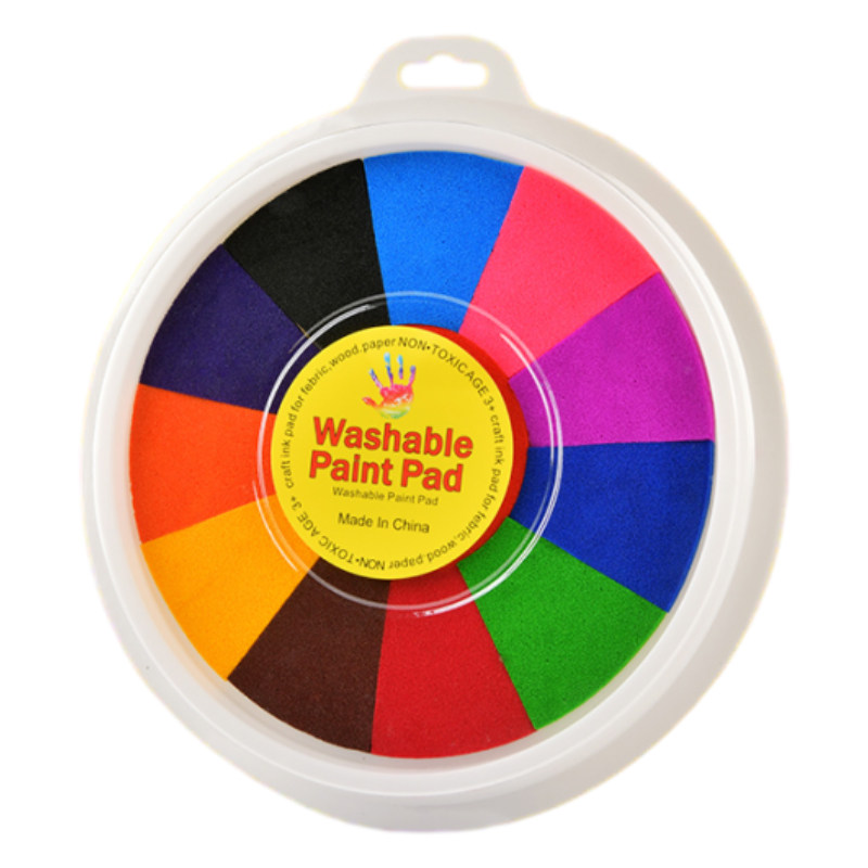 儿童手指画彩色印泥手印多色按指纹手印手掌画印泥印盘幼儿园安全颜料可水洗12色海绵印台小学生绘画工具印尼