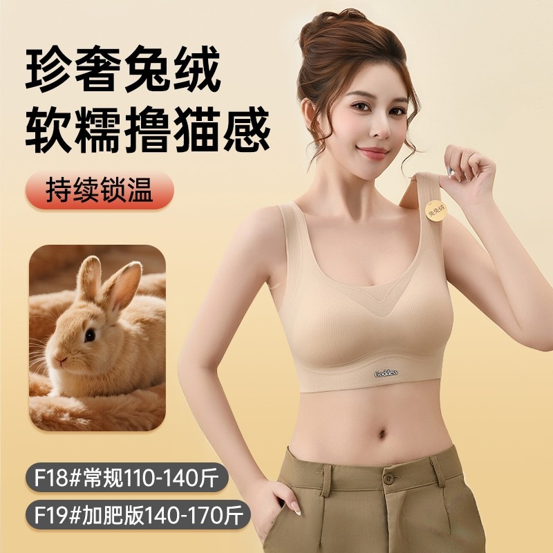 无痕兔兔绒保暖大码背心式内衣秋冬女胸罩聚拢小胸收副乳蓄热文胸