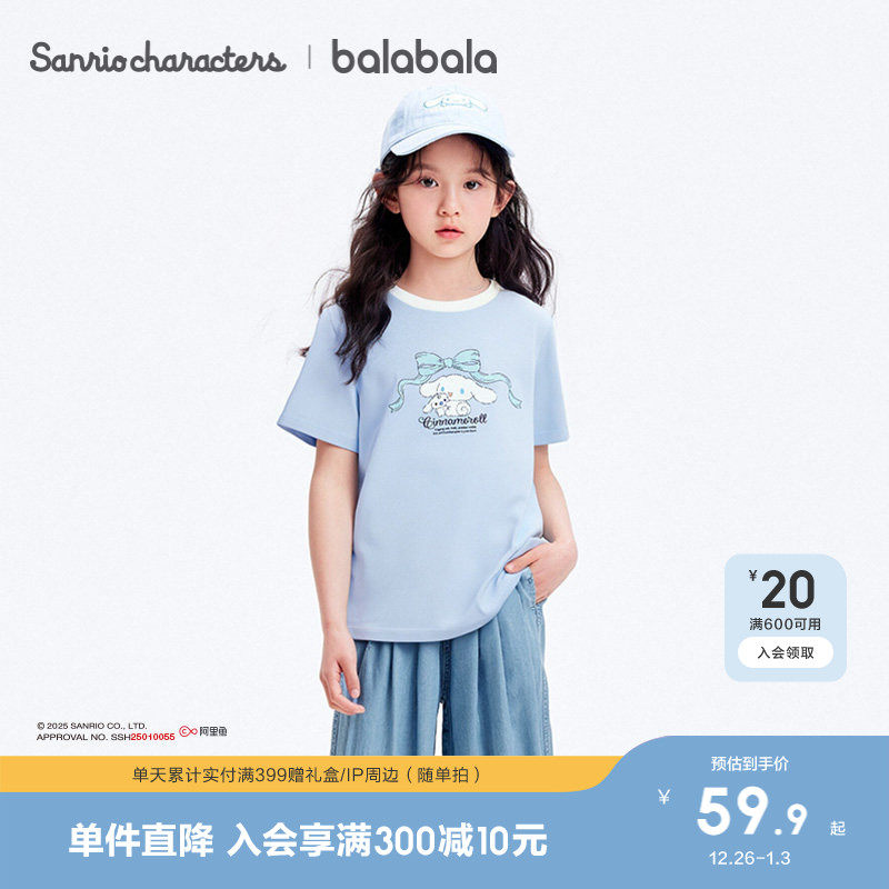 【库洛米】巴拉巴拉童装女童短袖t恤儿童2025新款夏装上衣速干衣
