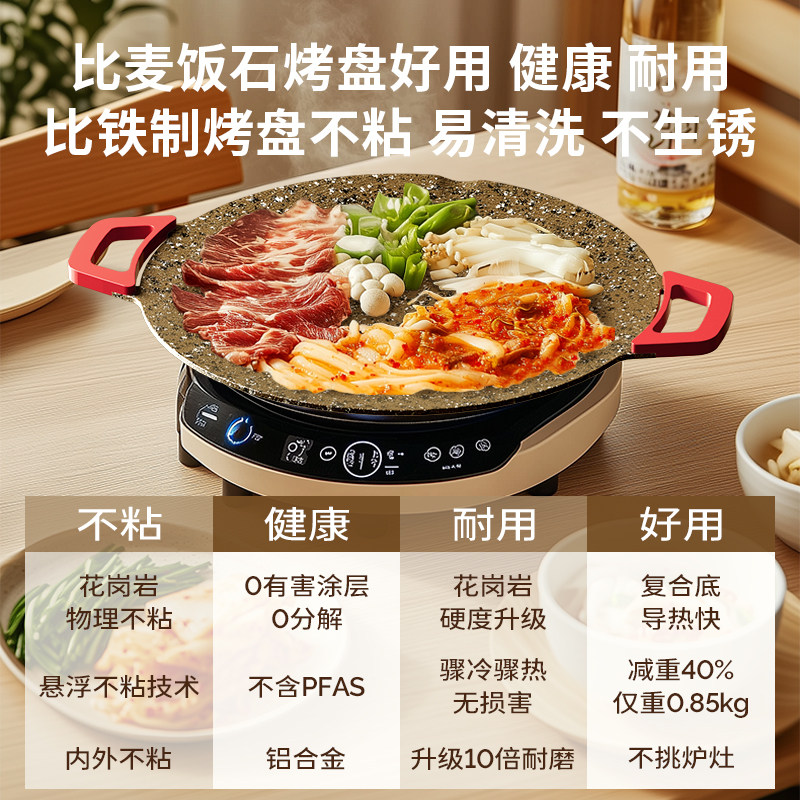 花岗岩轻油少烟多功能不粘卡式炉电磁炉通用