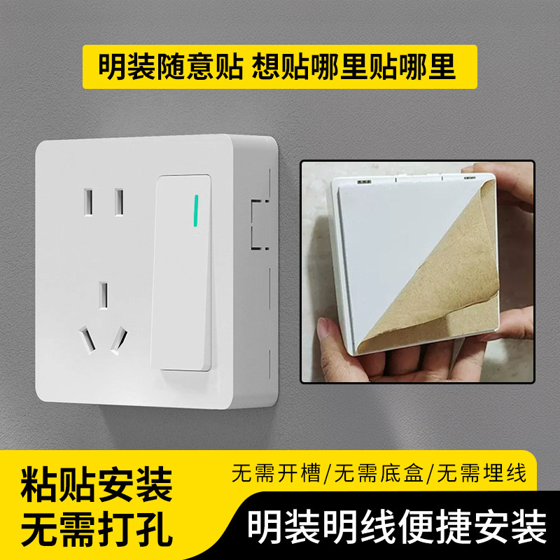 明装开关插座明线带免打孔十孔一开五孔插座带开关面板暗装七孔