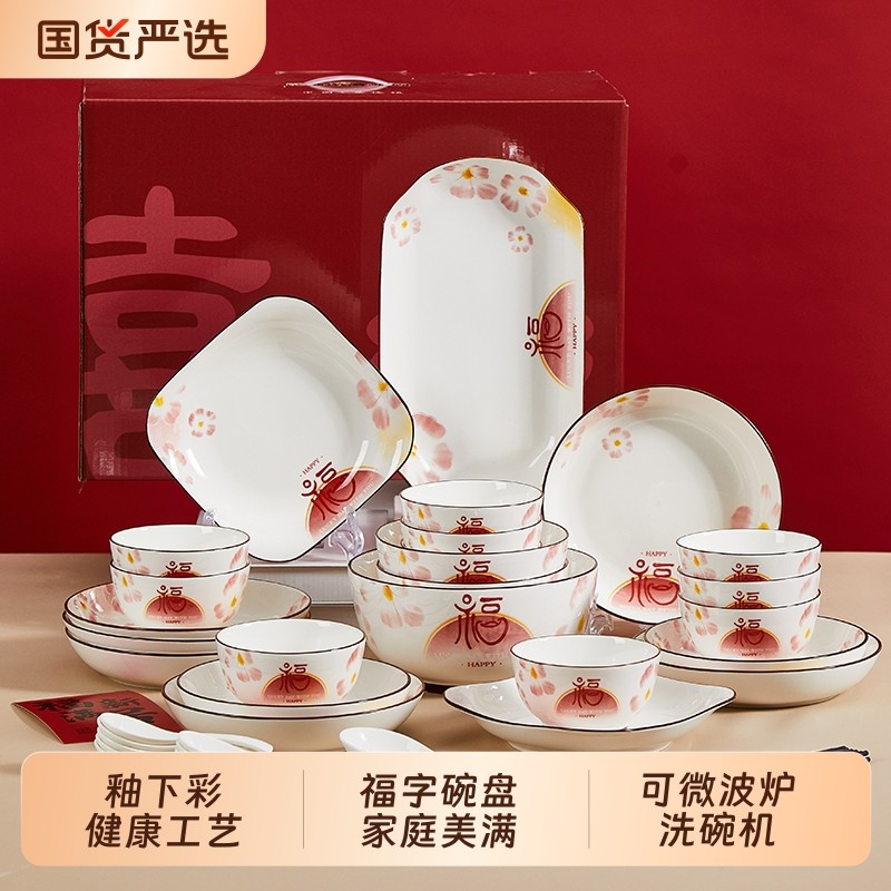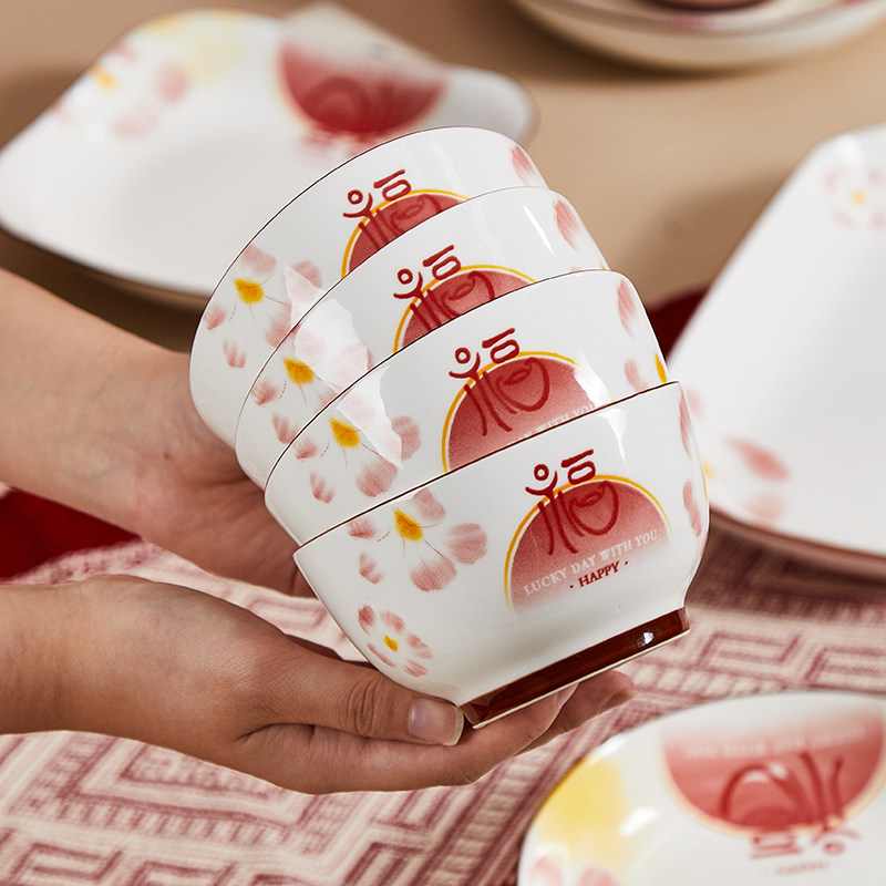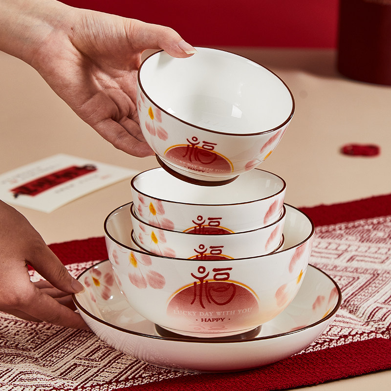 福字碗家用2025新款高颜值餐具套装新婚结婚乔迁碗碟盘筷饭碗实用