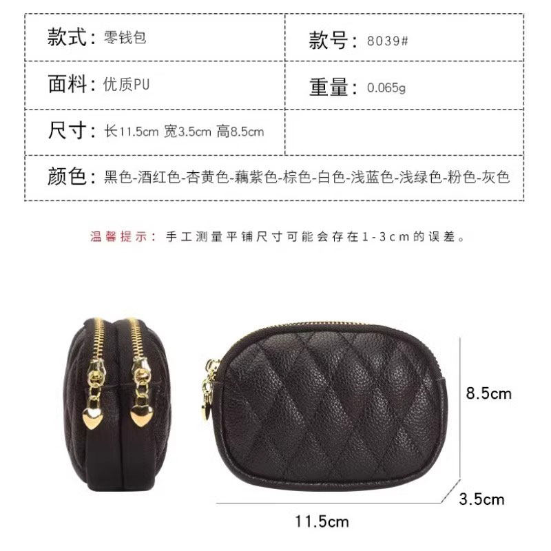 2025新款菱格绣线钱包女钥匙环扣硬币包双层拉链真皮质感小零钱包