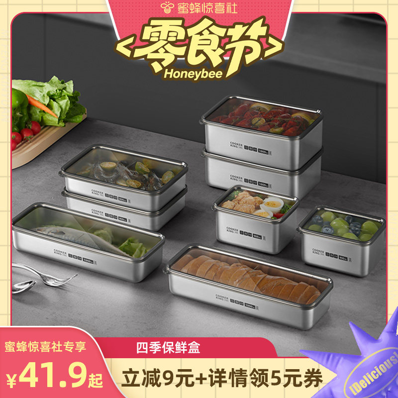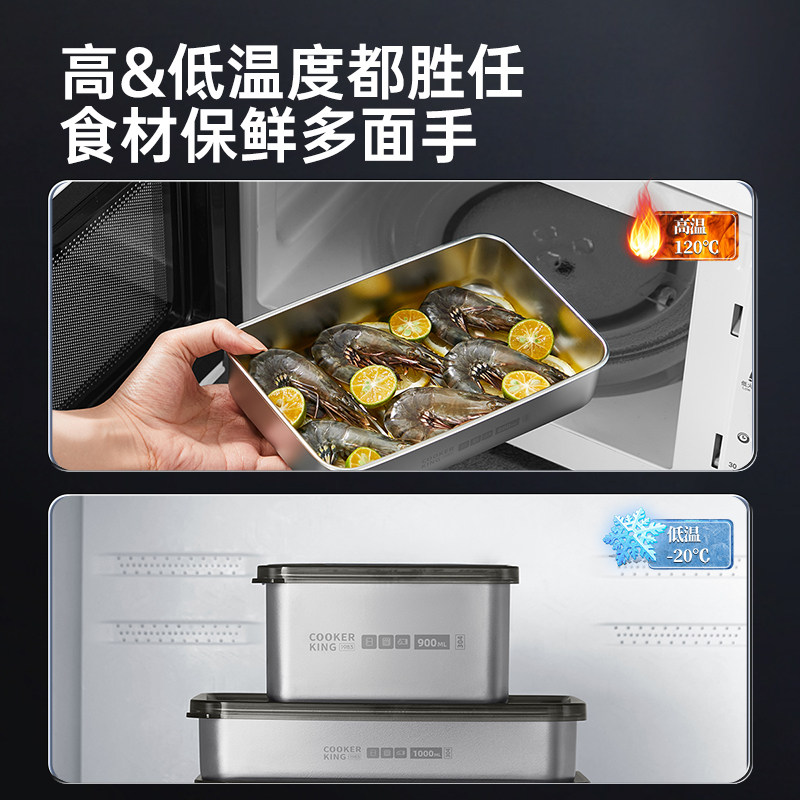 炊大皇不锈钢保鲜盒冰箱专用密封收纳盒水果上班族便当304饭盒