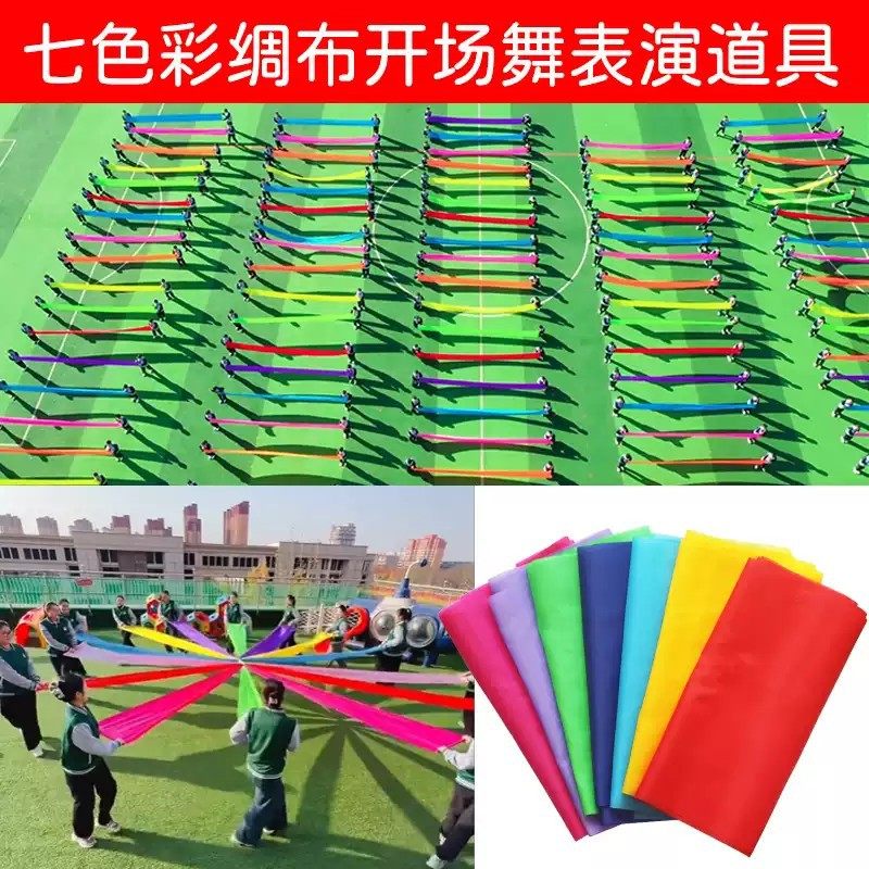 红绸布彩带舞蹈五角星蓝色七色彩绸锻开幕式运动会开场舞表演道具