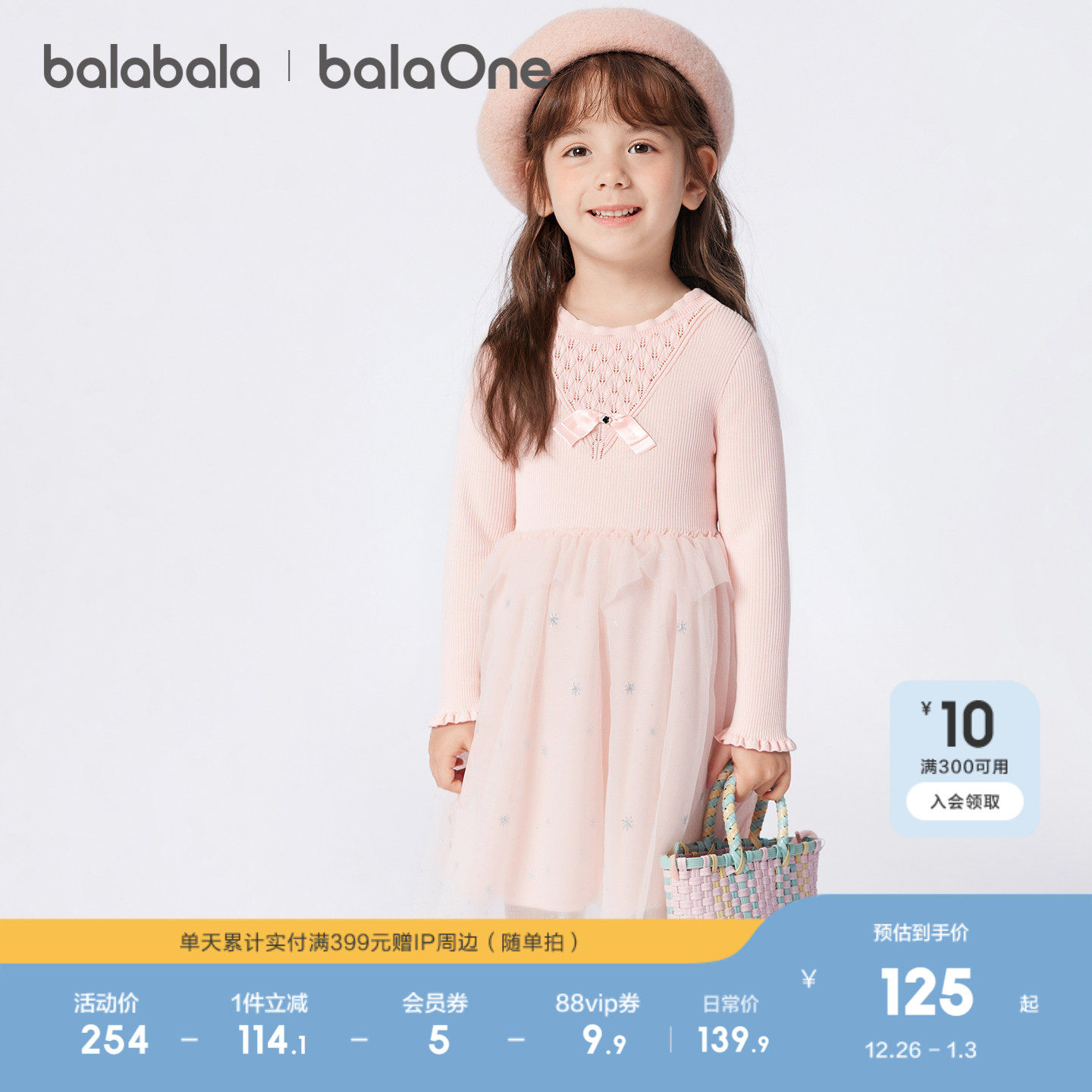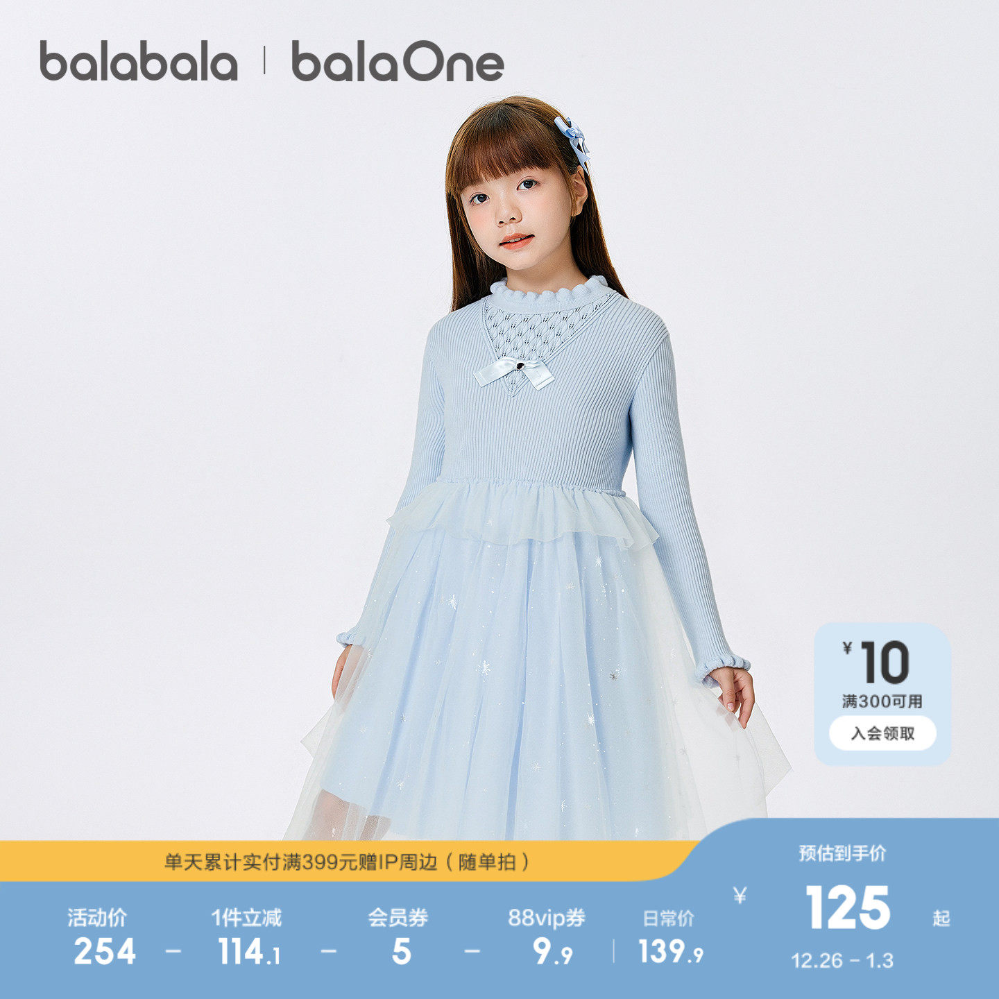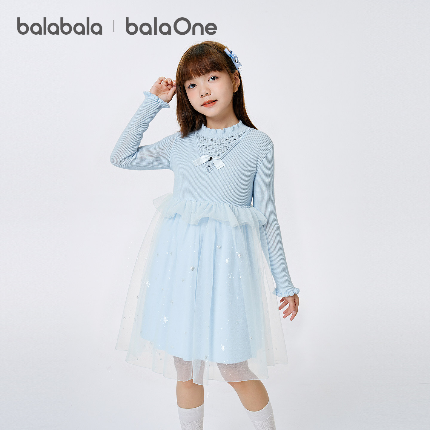 巴拉巴拉balaOne童装儿童连衣裙女2025秋冬新款公主裙针织网纱裙