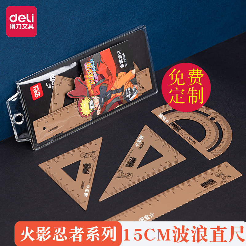 得力火影忍者尺子小学生套尺四件套金属高颜值铝合金考试专用正品