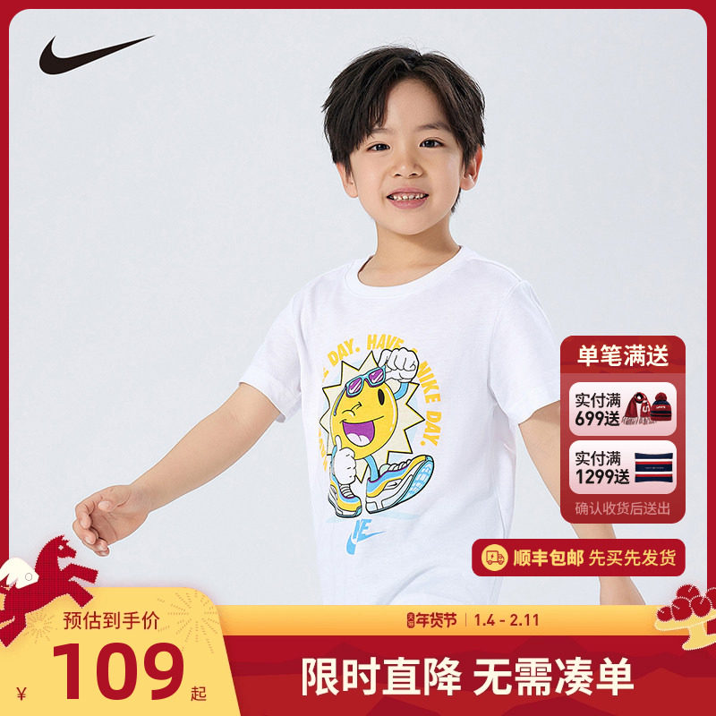 【舒爽棉】Nike童装男女童短袖上衣运动T恤夏季儿童半袖NY2422074