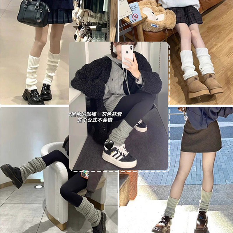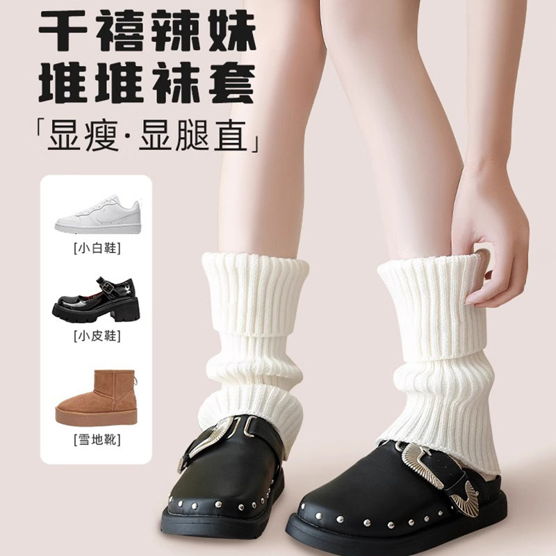 雪地靴袜套女堆堆袜秋冬季白色袜子女小腿袜y2k针织保暖腿套黑色