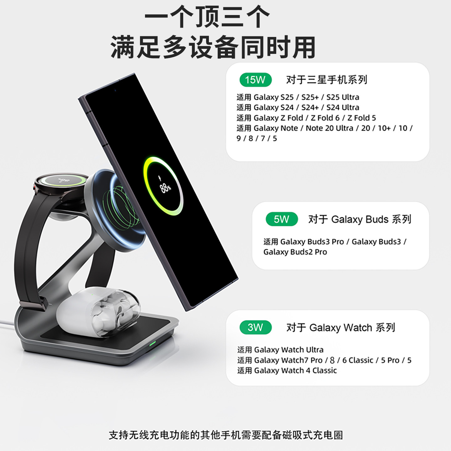适用三星s26ultra三合一无线充电器S25Ultra/S24U/S23磁吸充电底座Galaxy watch8classic/7/6/5手表耳机支架