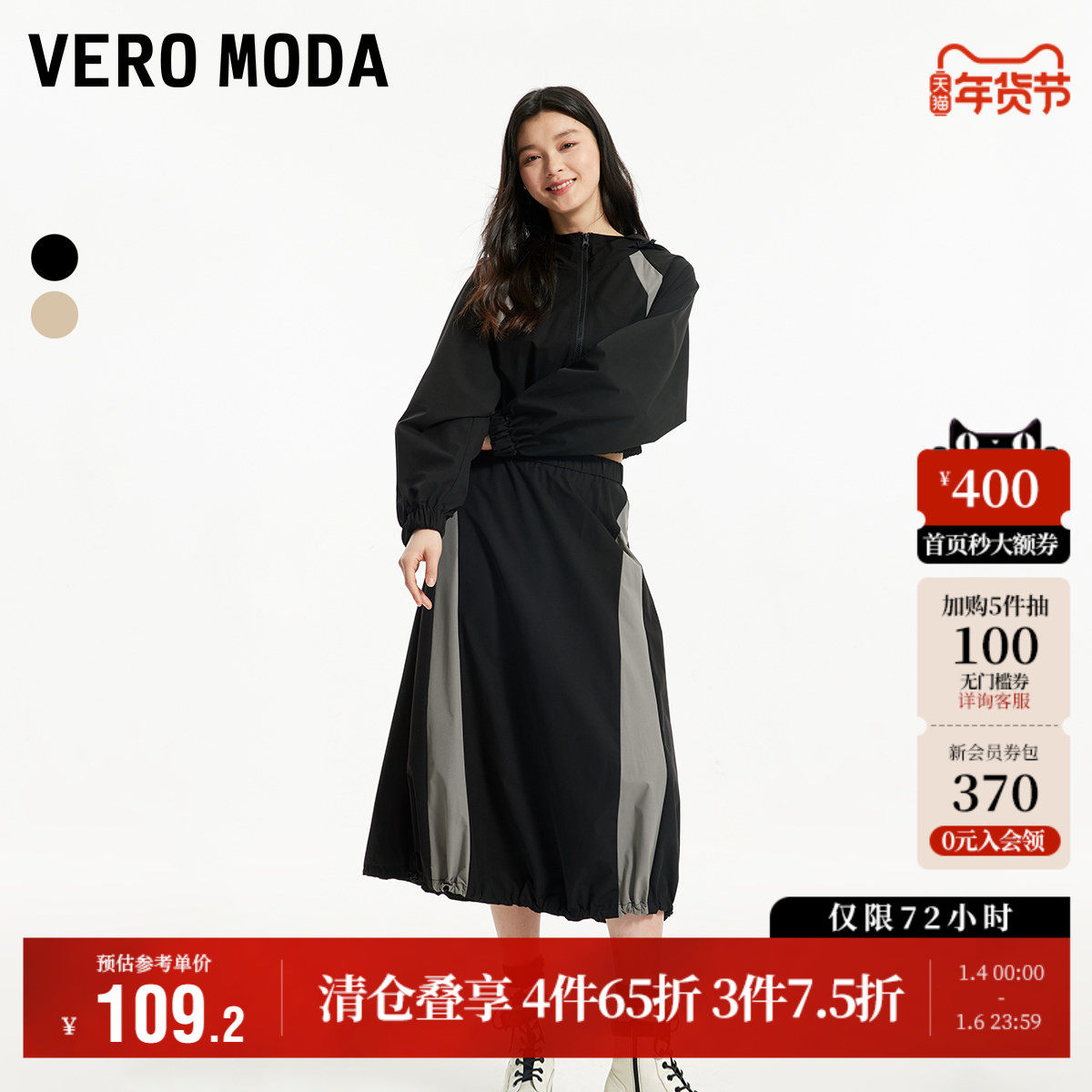 Vero Moda奥莱半身裙秋季新款拼色机能风高腰A字休闲时尚裙子流行