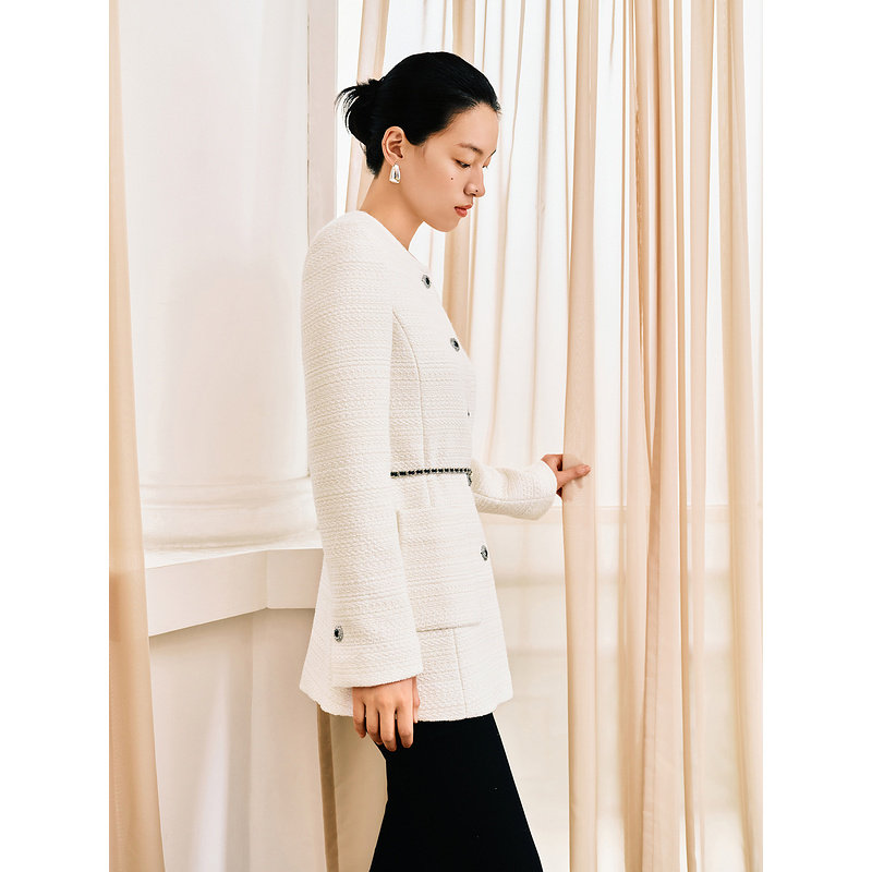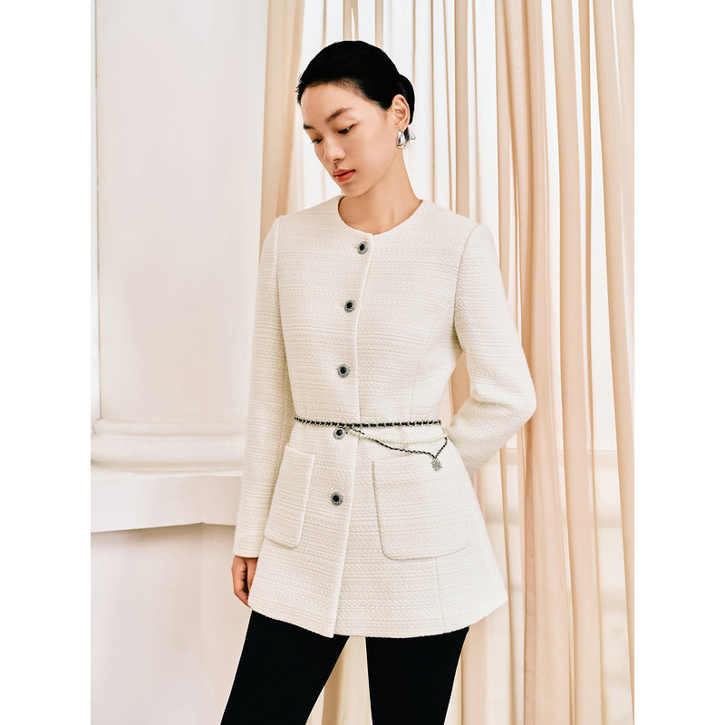 YINER音儿女装女装冬季时尚法式小香风圆领羊毛混纺短外套