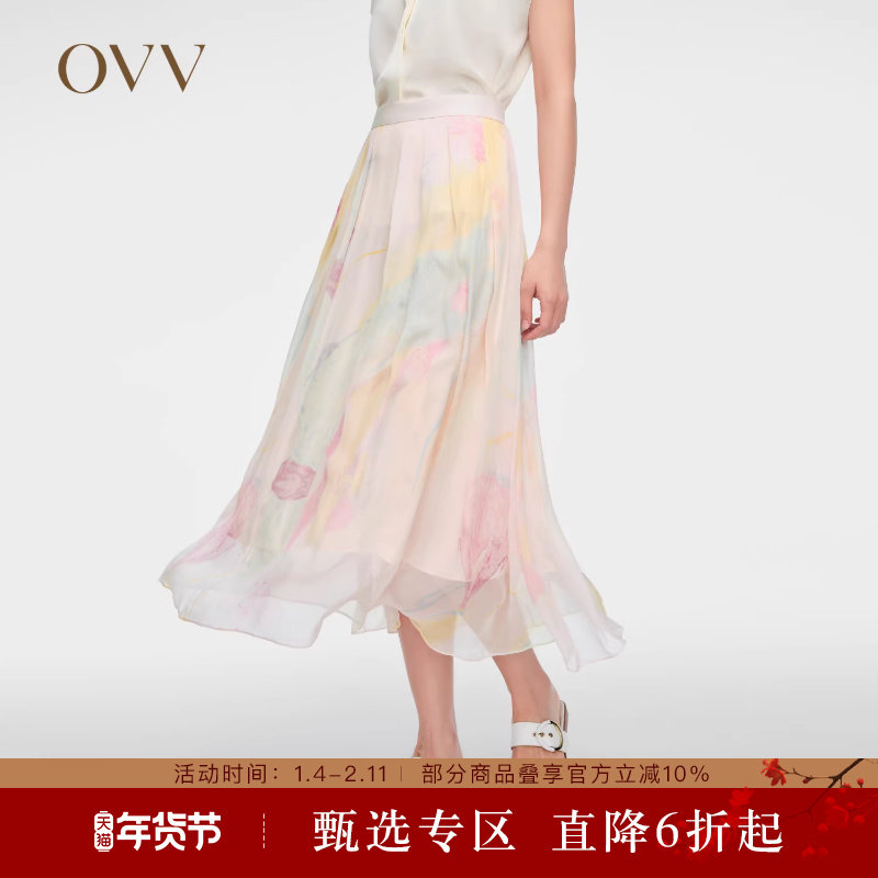 【艺术家联名】OVV春夏热卖女装6MM印花真丝A字半身裙