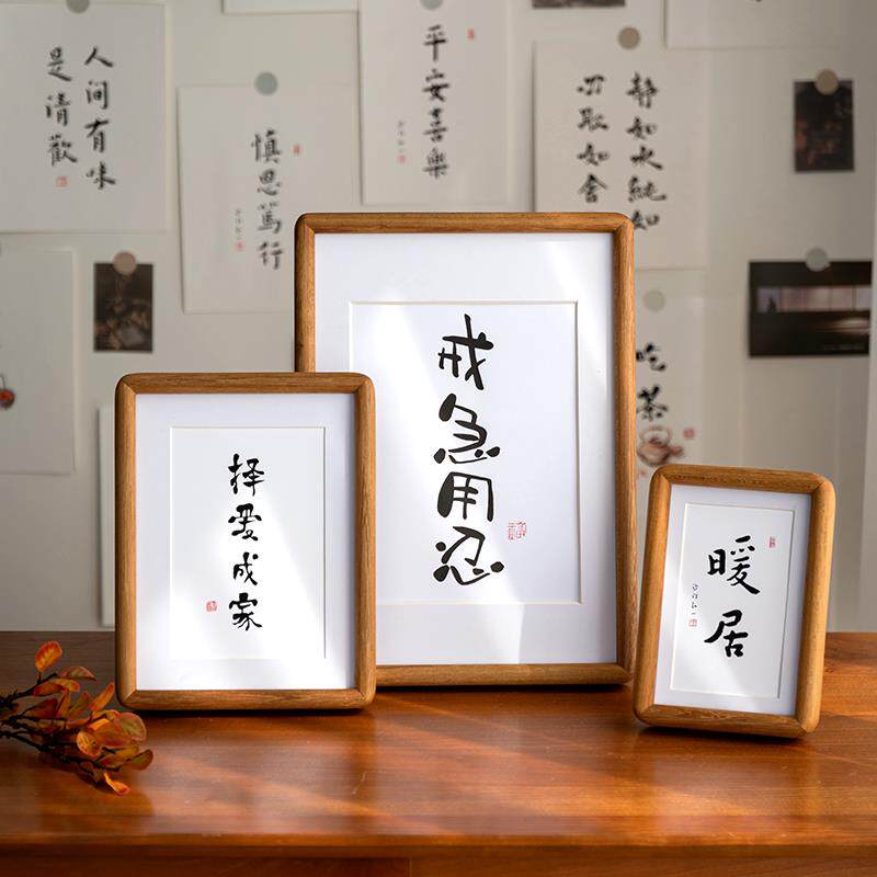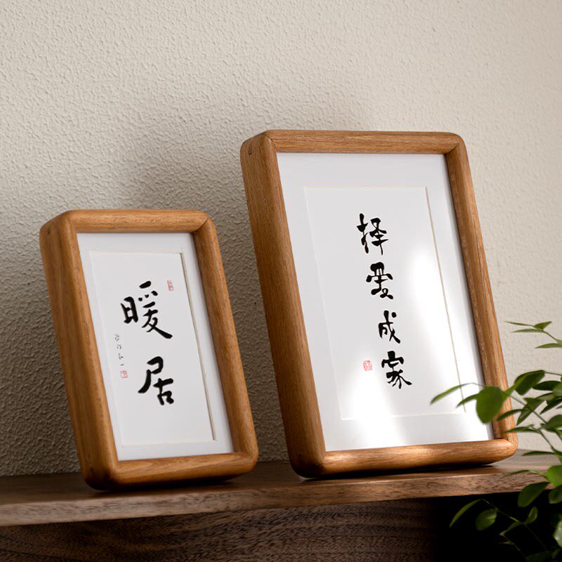 复古榫卯空白书法六寸摆台洗照片做成相框小摆件圆角画框