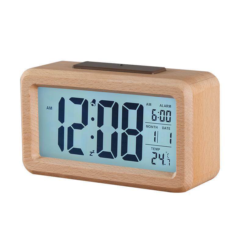 TQJ实木夜灯贪睡闹钟床头座钟学生用静音桌面钟时尚台面时钟台钟