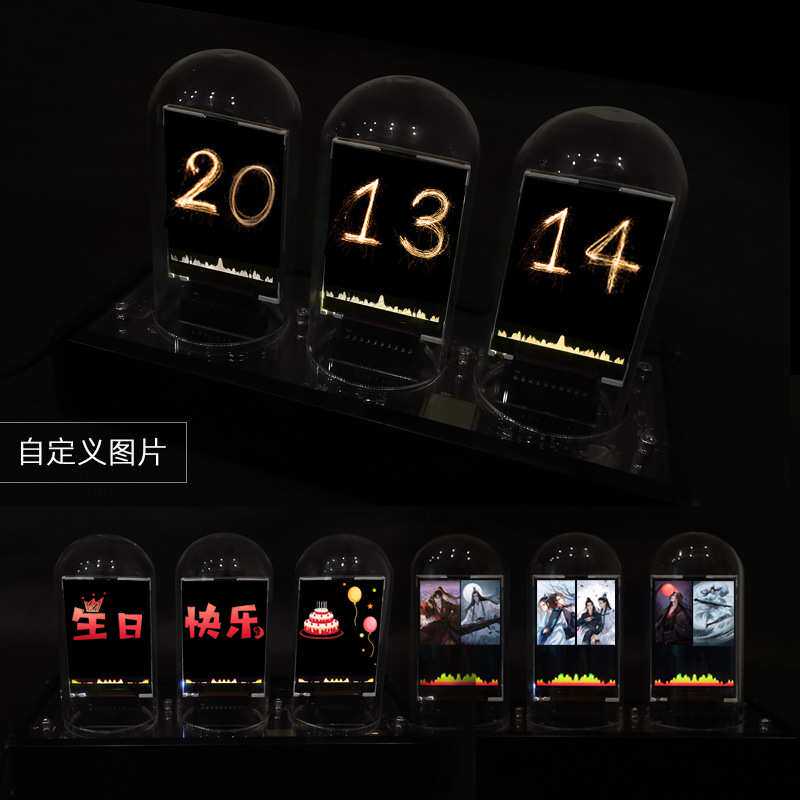 RGB拟辉光管时钟 复古命运石之门氛围灯 led电子钟光管台钟闹钟
