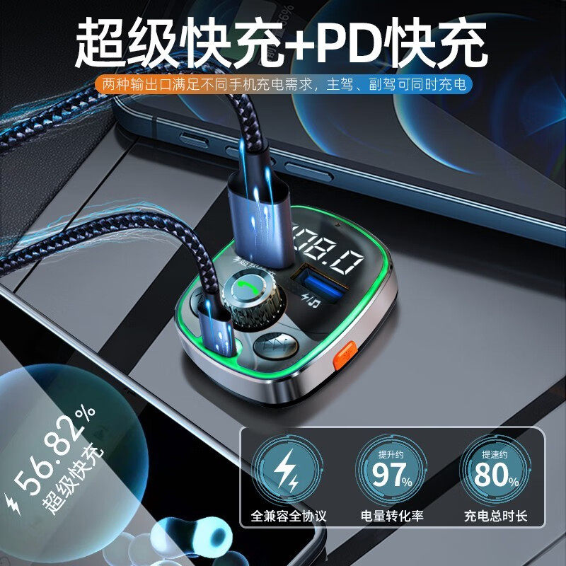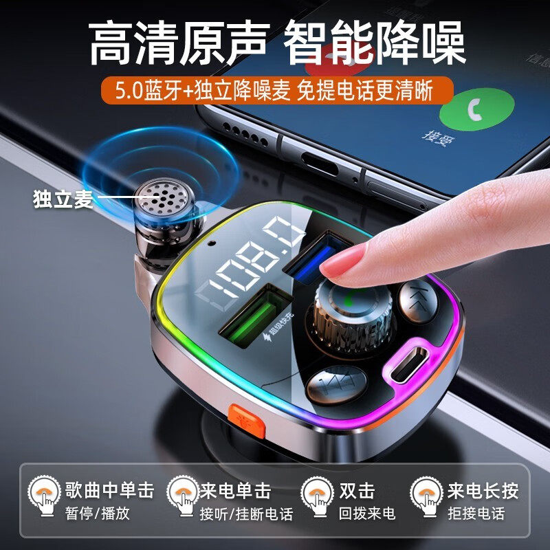 纽曼 车载蓝牙mp3播放器音乐U盘12V汽车载式点烟器双口QC3.0快充电器
