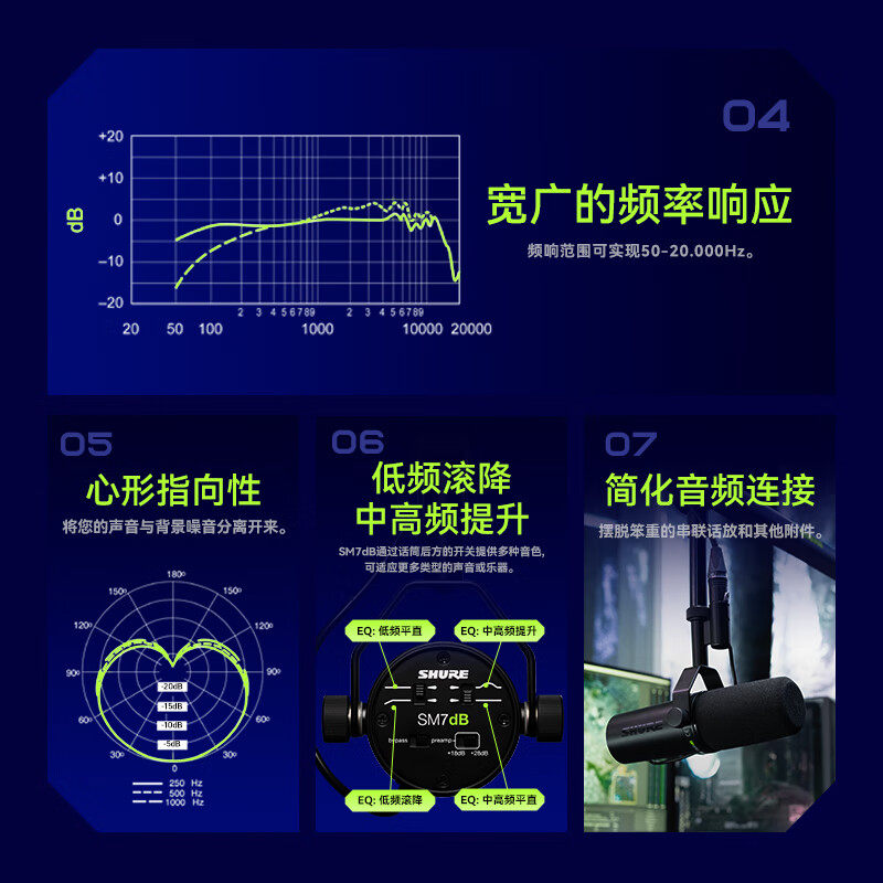 Shure/舒尔 SM7dB录音室动圈麦克风电台直播人声话筒sm7b升级版