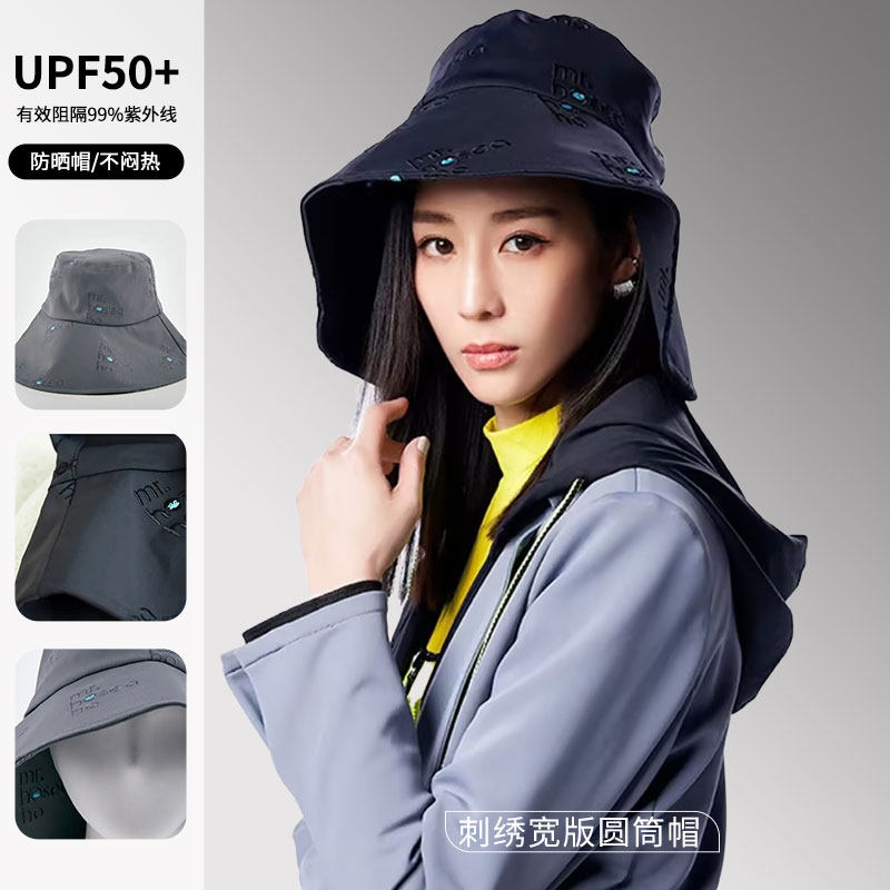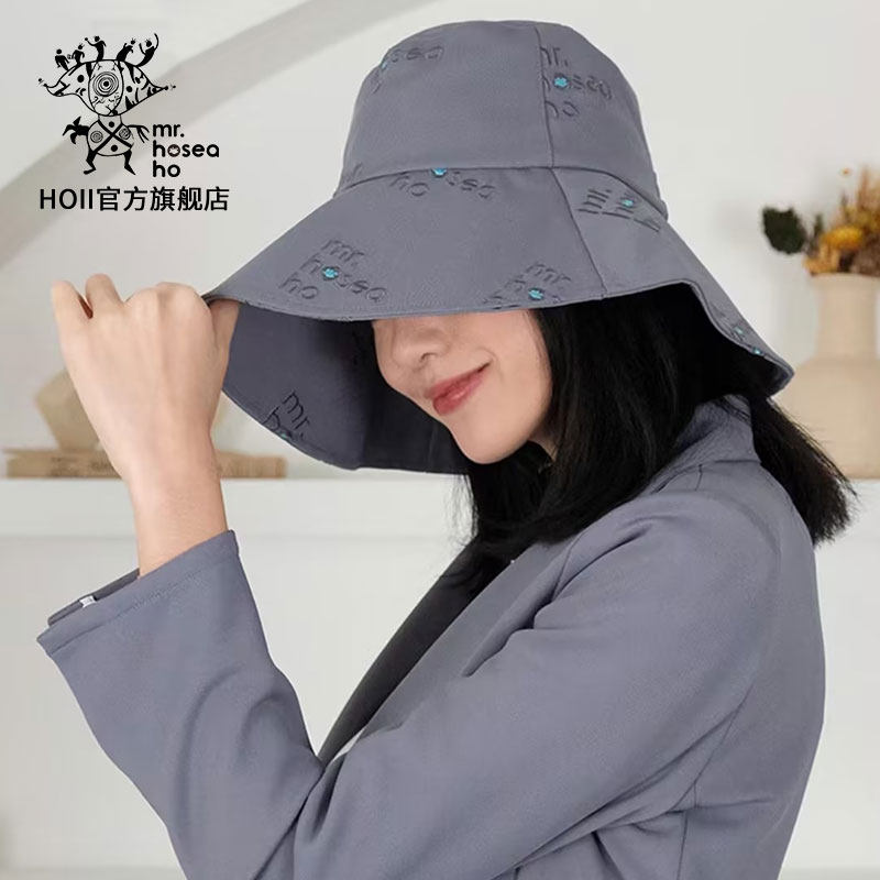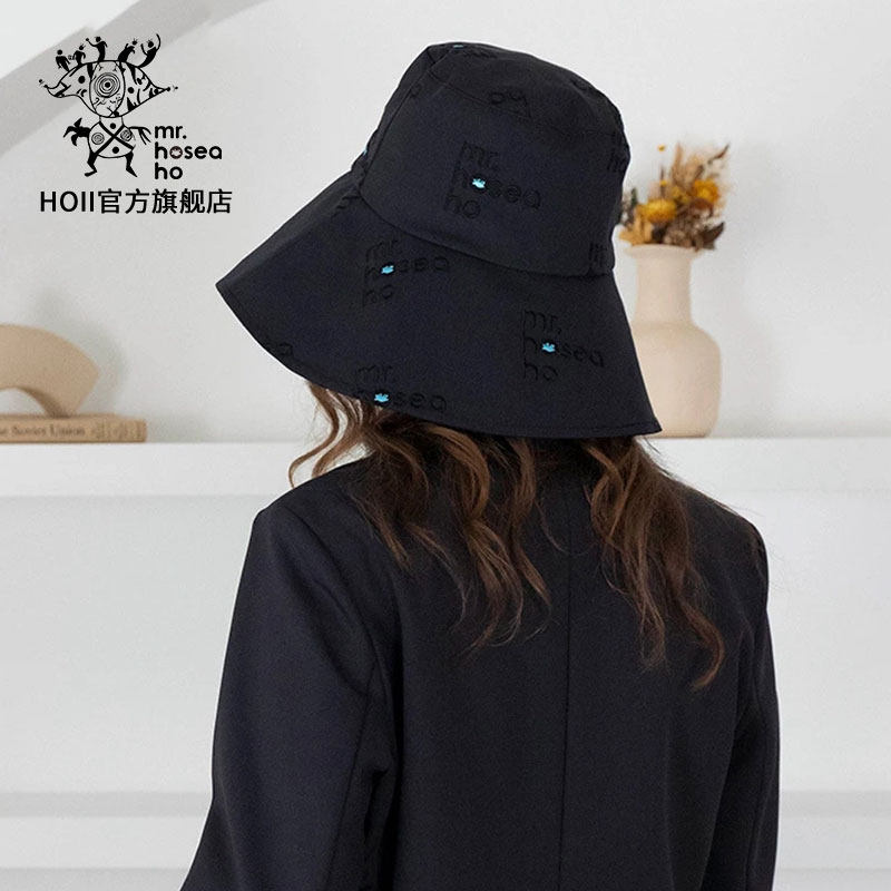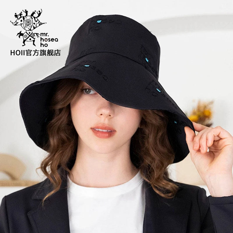 HOII/后益明星同款hosea防晒帽刺绣宽版圆筒帽大帽檐渔夫帽太阳帽