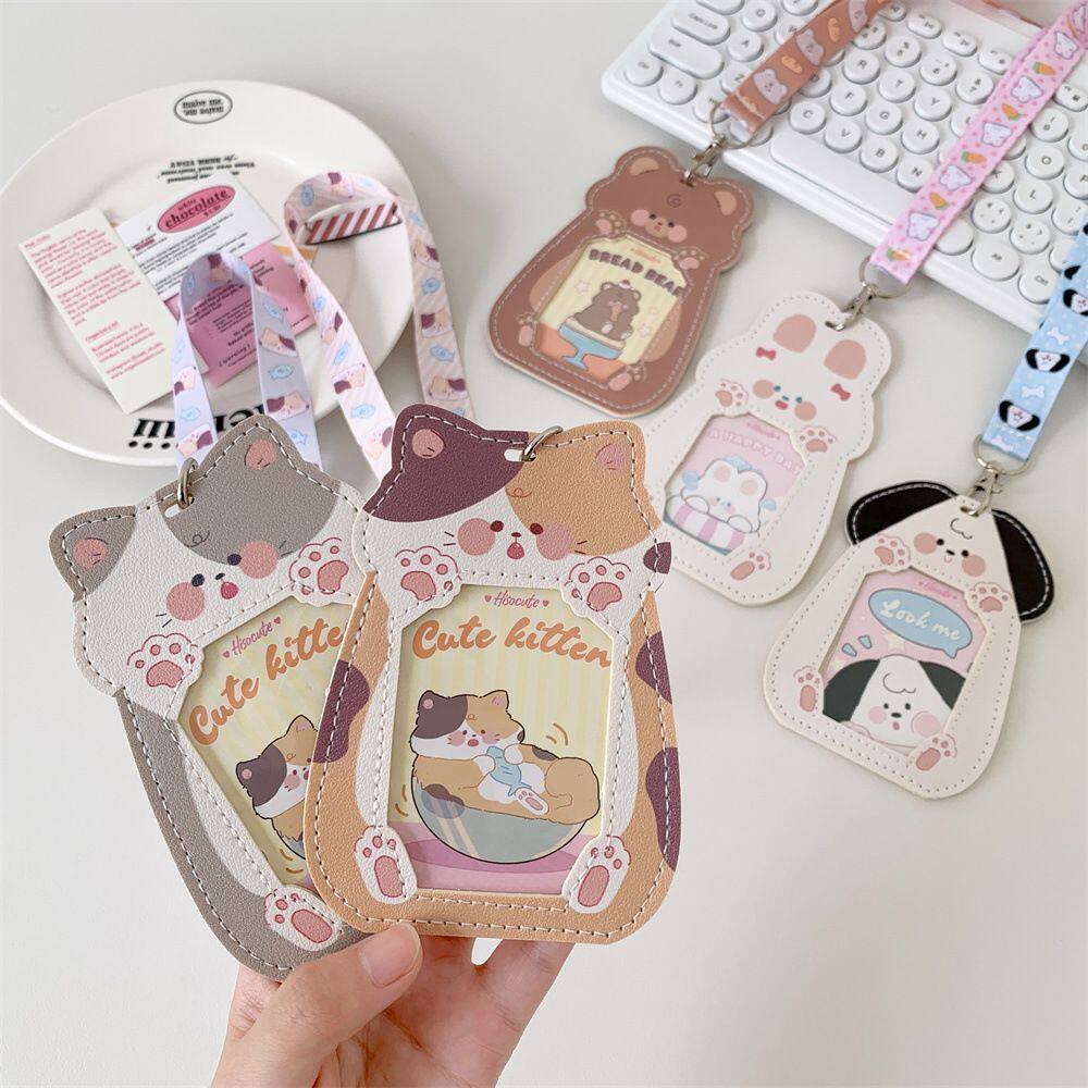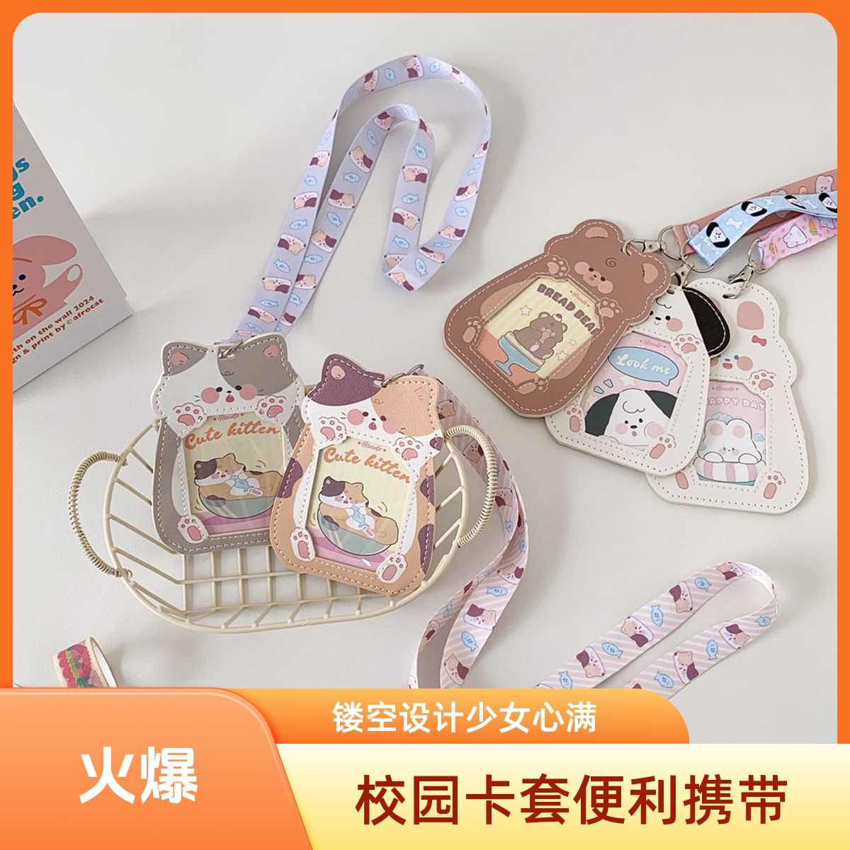 ins猫咪造型镂空透明卡套少女挂脖公交卡证件卡学生校园卡保护套