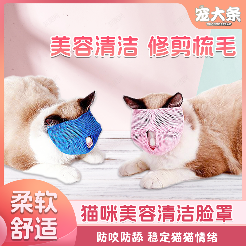 防止猫咪抓咬头套薄款透气猫脸罩宠物猫清洁美容辅助工具猫脸口罩