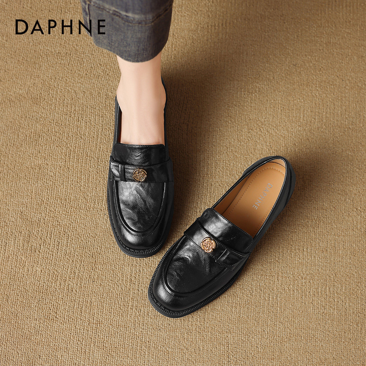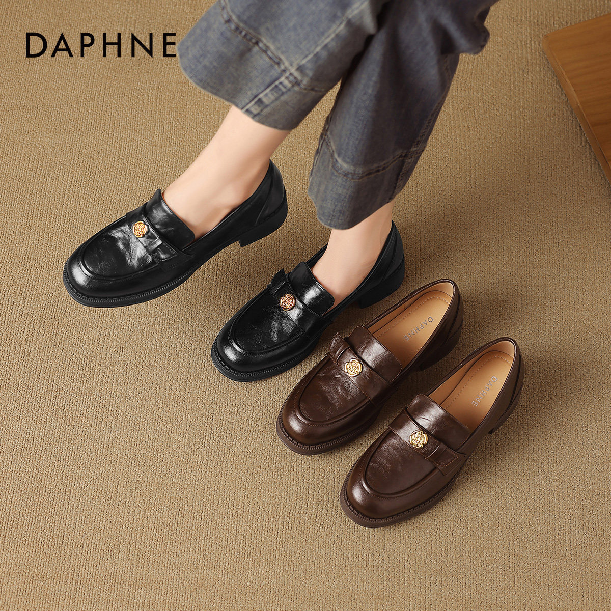 达芙妮厚底乐福鞋女春季2026新款英伦风黑色小皮鞋粗跟通勤单鞋子