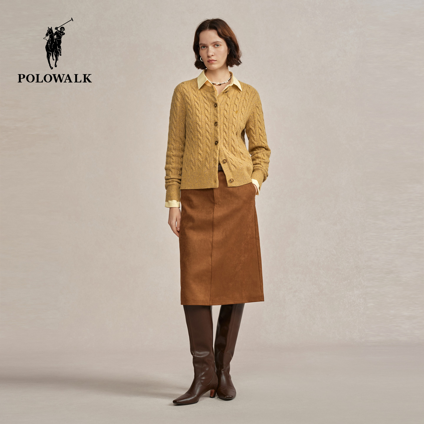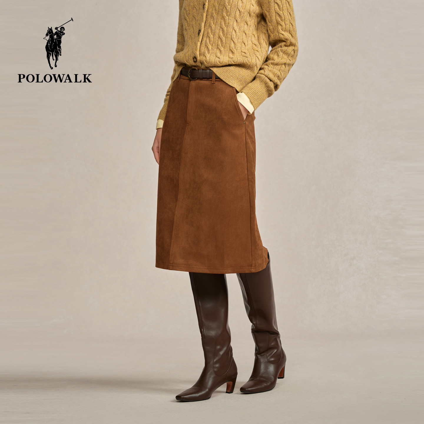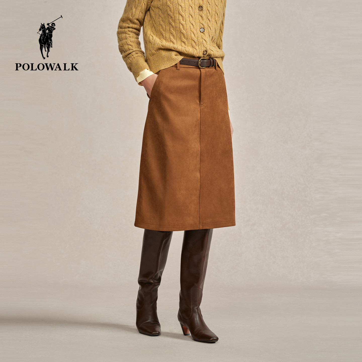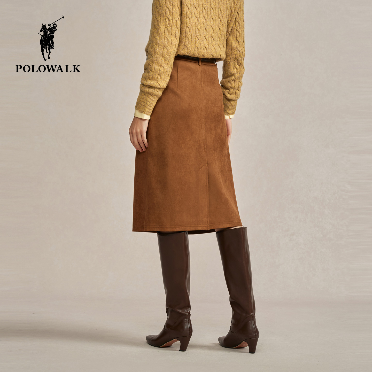 POLOWALK女装半身裙2025秋冬新款女士复古半裙直筒短裙女裙子