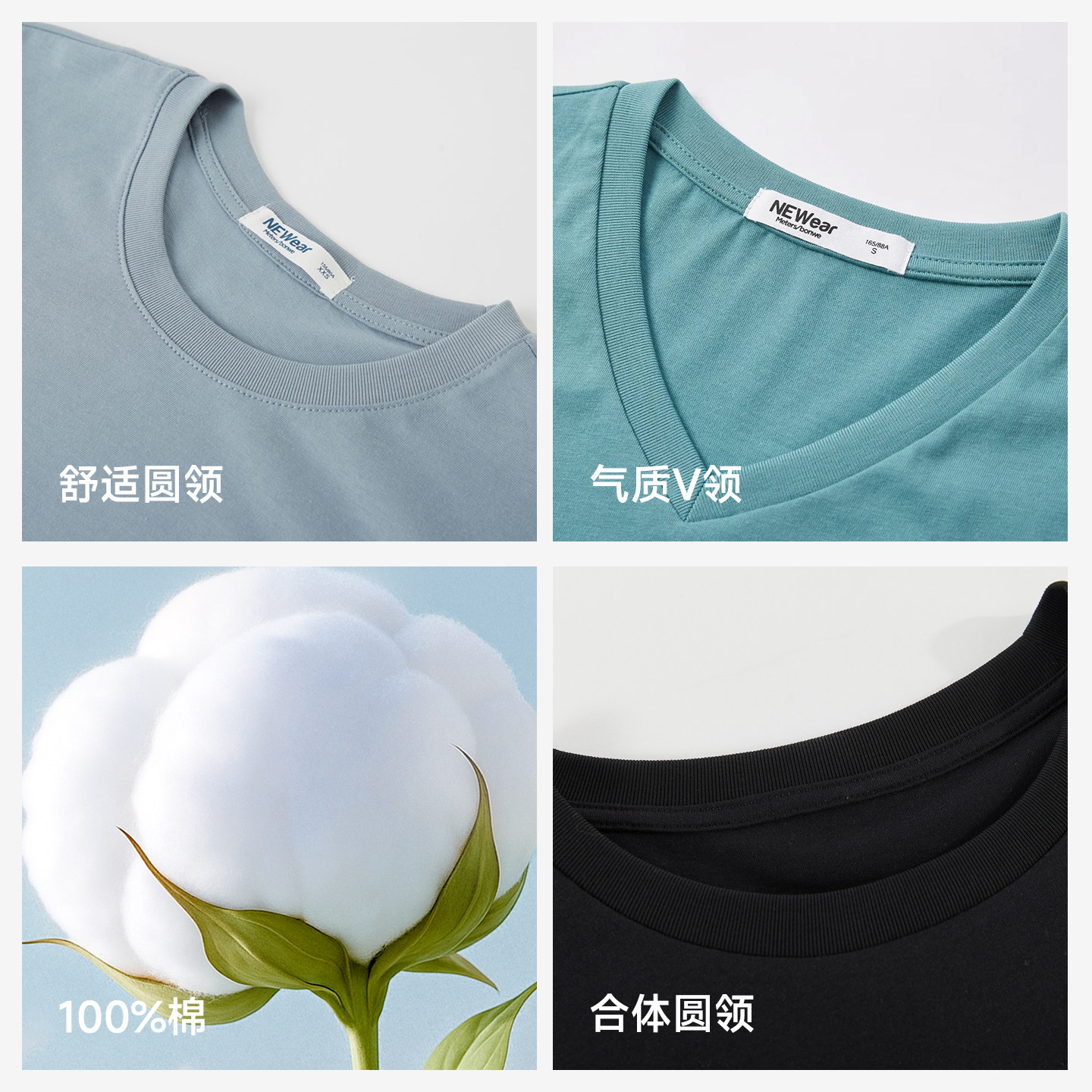圆领 V领 两款可选 经典纯色 纯棉舒适