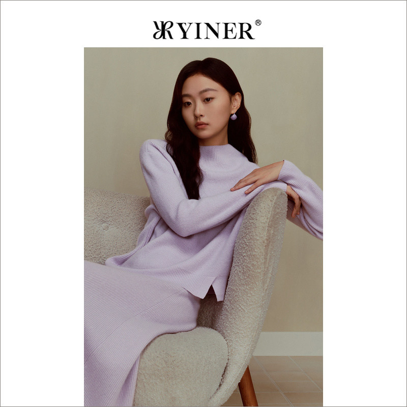 【裸感羊绒】YINER音儿女装冬季绵羊毛开衩针织衫套头