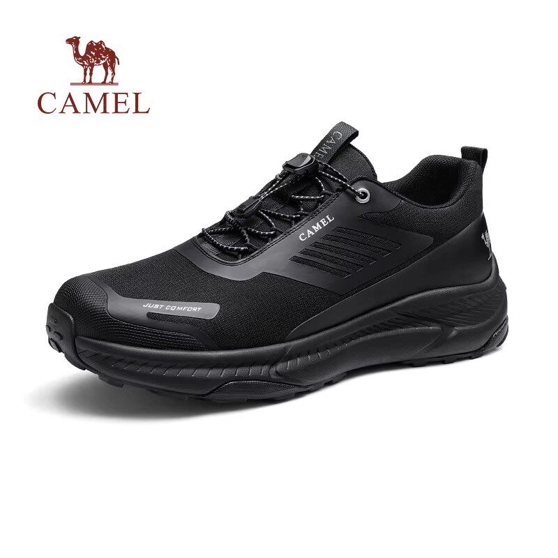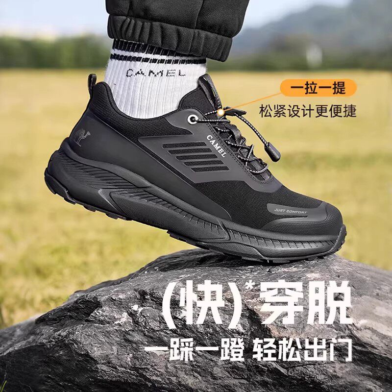 骆驼运动鞋男2026春季新款中年爸爸跑步鞋免系户外休闲徒步鞋黑色